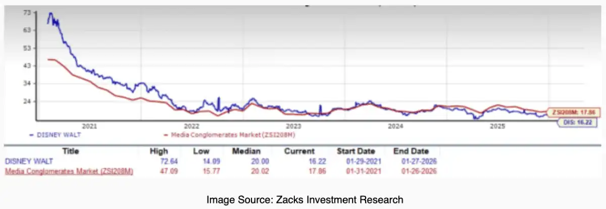 Right now, Disney is trading at a forward P/E ratio of 16.22x, which is a discount compared to the industry average of 17.86x. This valuation might look tempting to long-term investors who believe in the company’s turnaround execution.