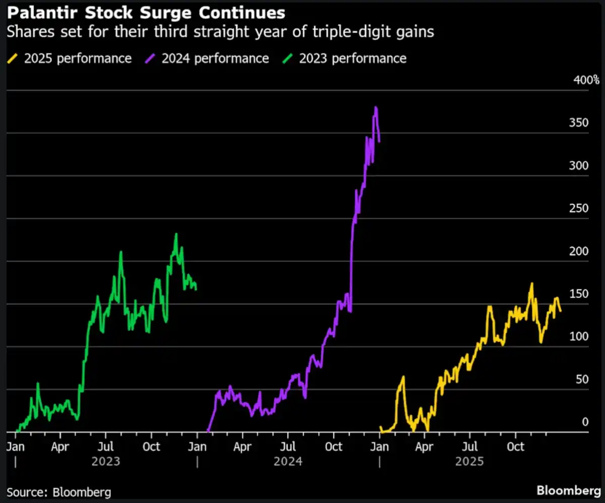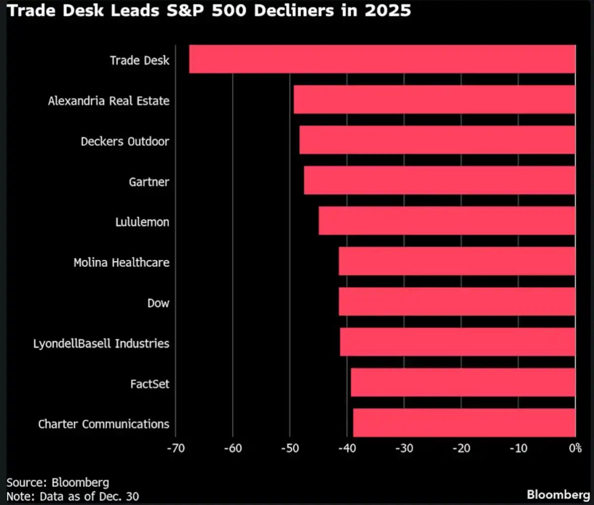 On the flip side, Palantir Technologies Inc. continued its winning streak with triple-digit gains for the third year in a row, thanks to strong buy-in from retail traders. However, Palantir’s valuation is getting pretty pricey with a price-to-earnings (P/E) ratio above 180x, making it one of the most expensive stocks in the index.