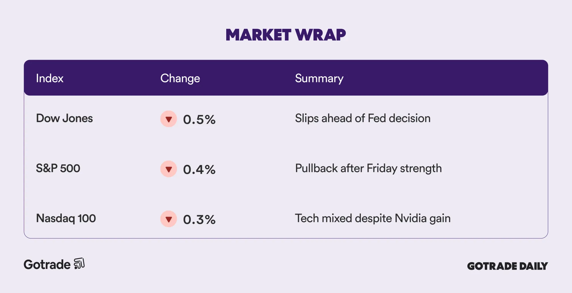 Indexes dip as traders position for the Fed meeting.
