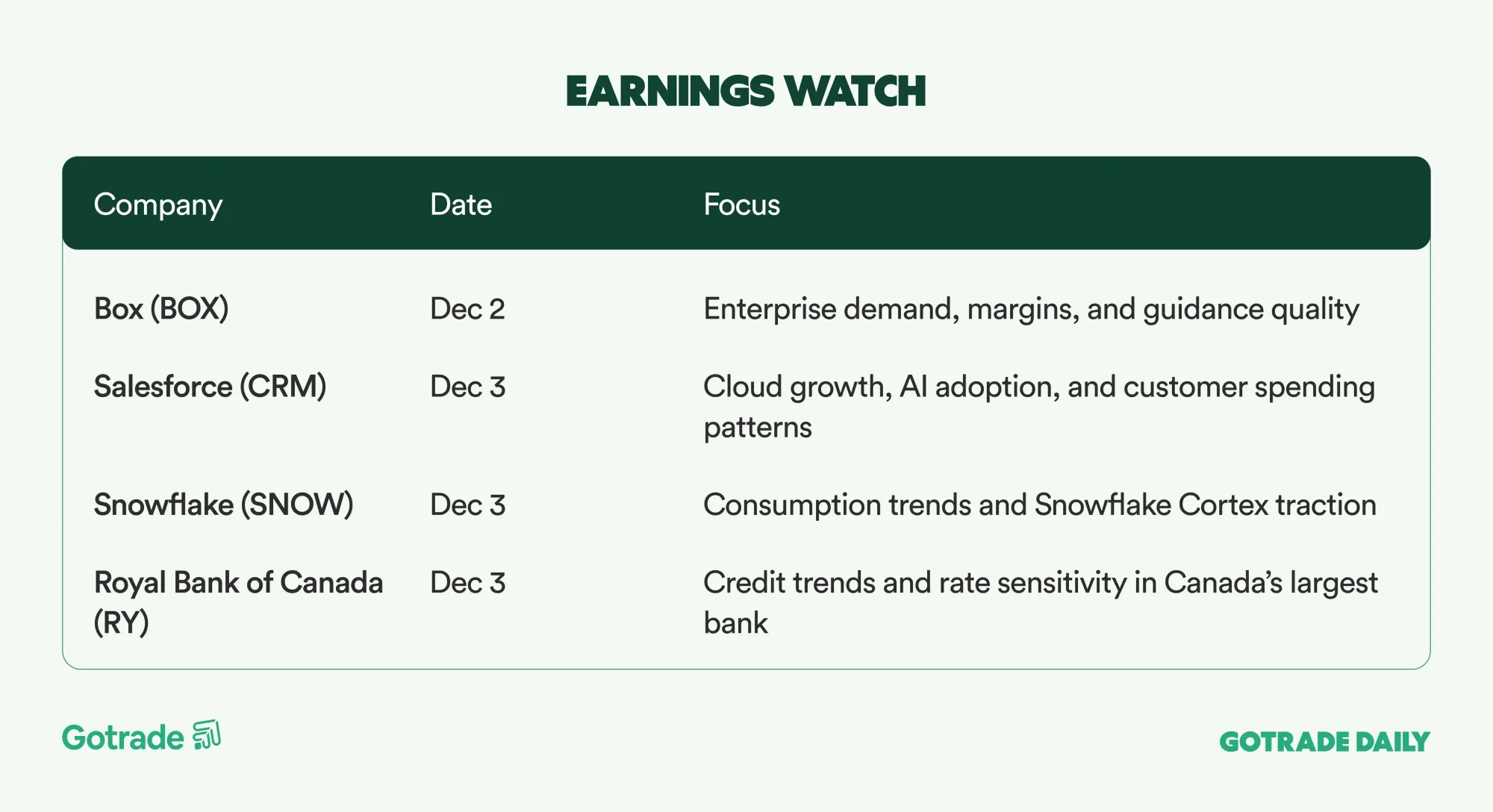 Markets enter December with seasonal tailwinds, rising expectations of a Fed rate cut, and renewed attention on crypto driven volatility. Traders will be watching how risk appetite stabilizes as new data and sector rotation shape the tone for the week.