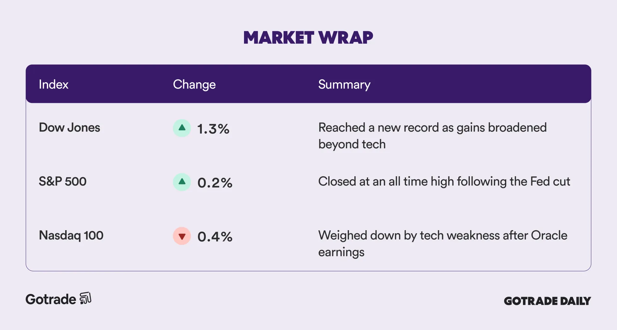 Rate cut momentum offsets tech pressure after Oracle earnings.