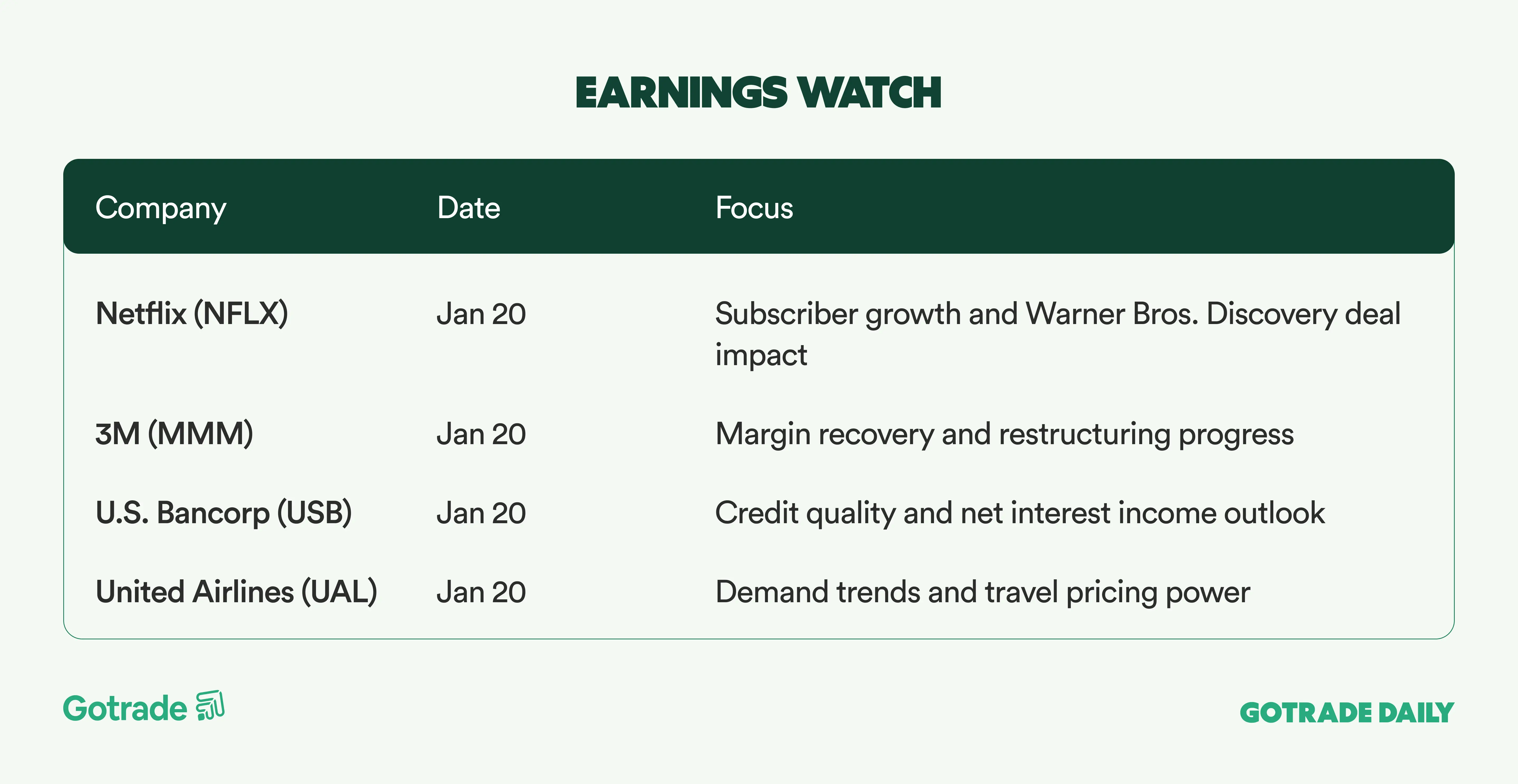 Earnings are the real test. Netflix (NFLX) and Intel (INTC) headline the week, giving traders a read on streaming demand, M&A risk, and the AI hardware cycle. Their results will help decide whether this new market leadership can hold.