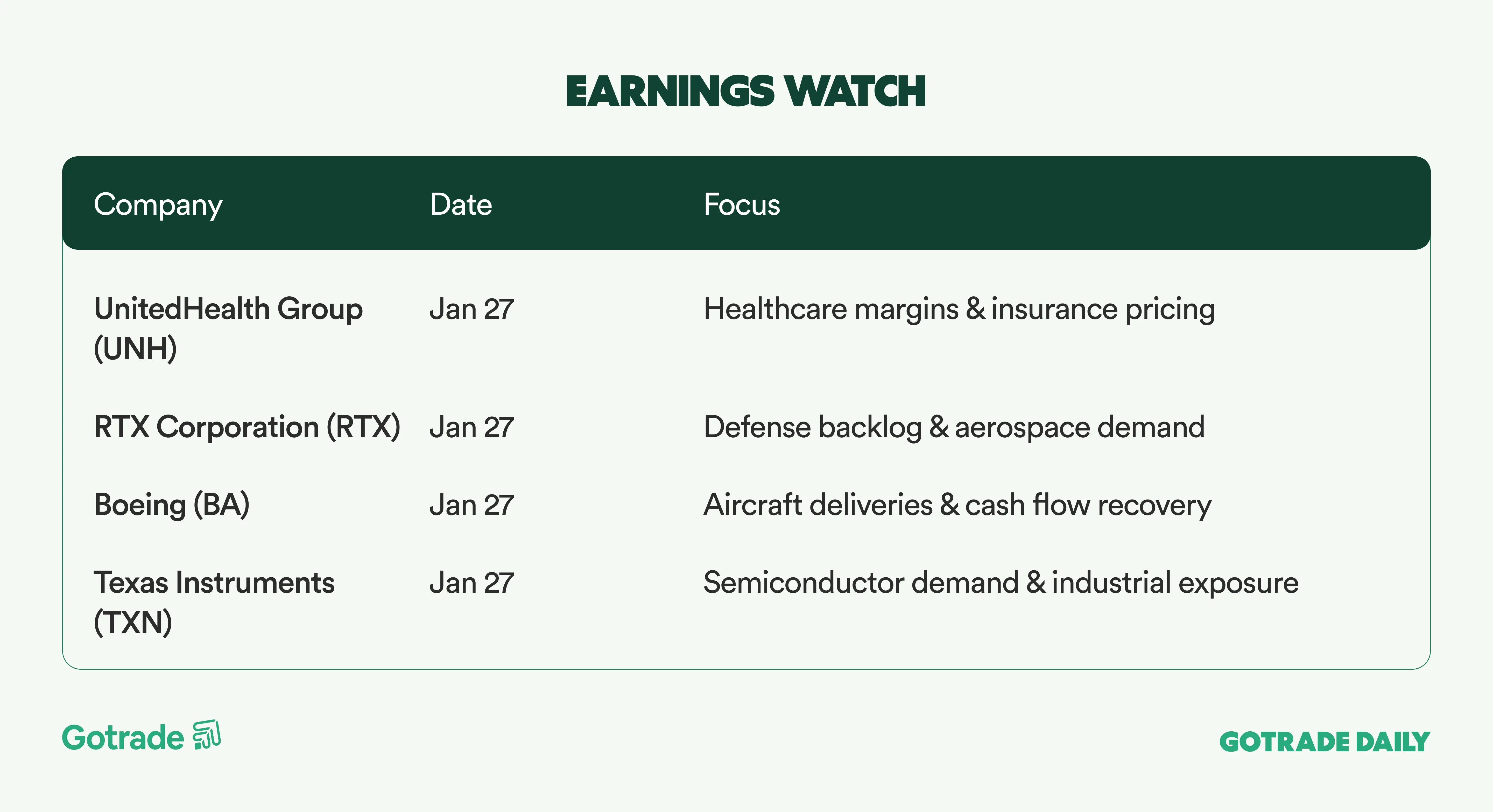 Markets head into the week with attention split between macro policy direction and the acceleration of earnings season. Investors are focused on the Federal Reserve’s first interest rate decision of 2026, with consensus expectations pointing to a pause, while closely parsing signals from Fed Chair Jerome Powell amid political pressure from the White House to push rates lower. With inflation still elevated and labor data mixed, communication and guidance may matter more than the rate decision itself.