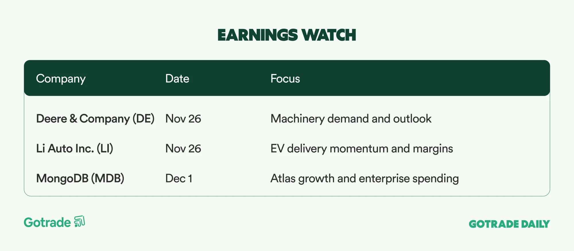 Note: US markets are closed Thursday for Thanksgiving. Gotrade Daily will resume with the next trading session.