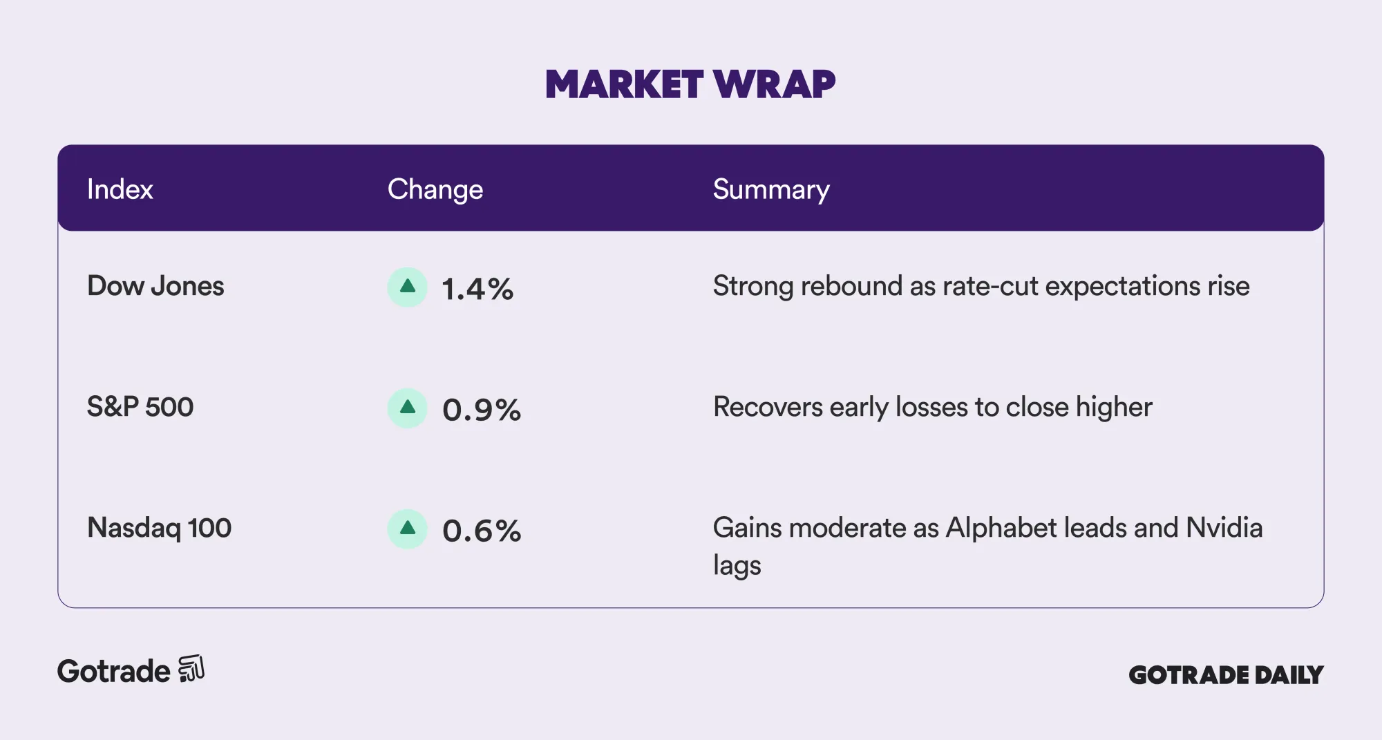 A major driver was renewed confidence in Alphabet’s improving AI position. Reports that Meta (META) is considering multi-billion-dollar purchases of Google’s AI chips pushed Alphabet (GOOG) to fresh record highs. The move followed Monday’s surge after the debut of Gemini 3, widely seen as Google’s strongest step yet in the current AI race.