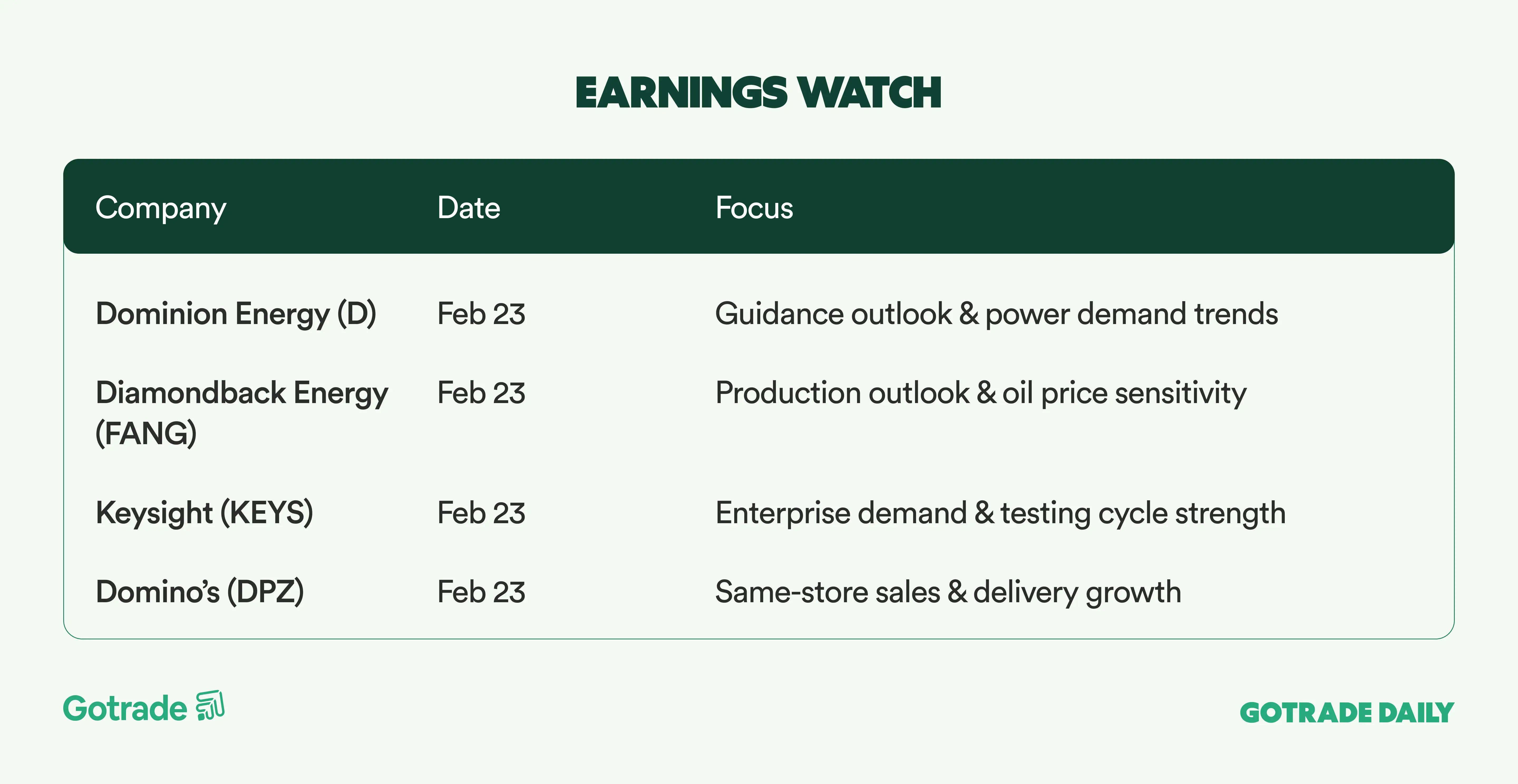 Investor focus now turns to a catalyst-heavy week ahead, particularly Nvidia (NVDA) earnings, which have historically acted as a major driver for technology and AI stocks. Trump’s State of the Union address and comments from Federal Reserve officials may also provide signals about the future path of interest rates.