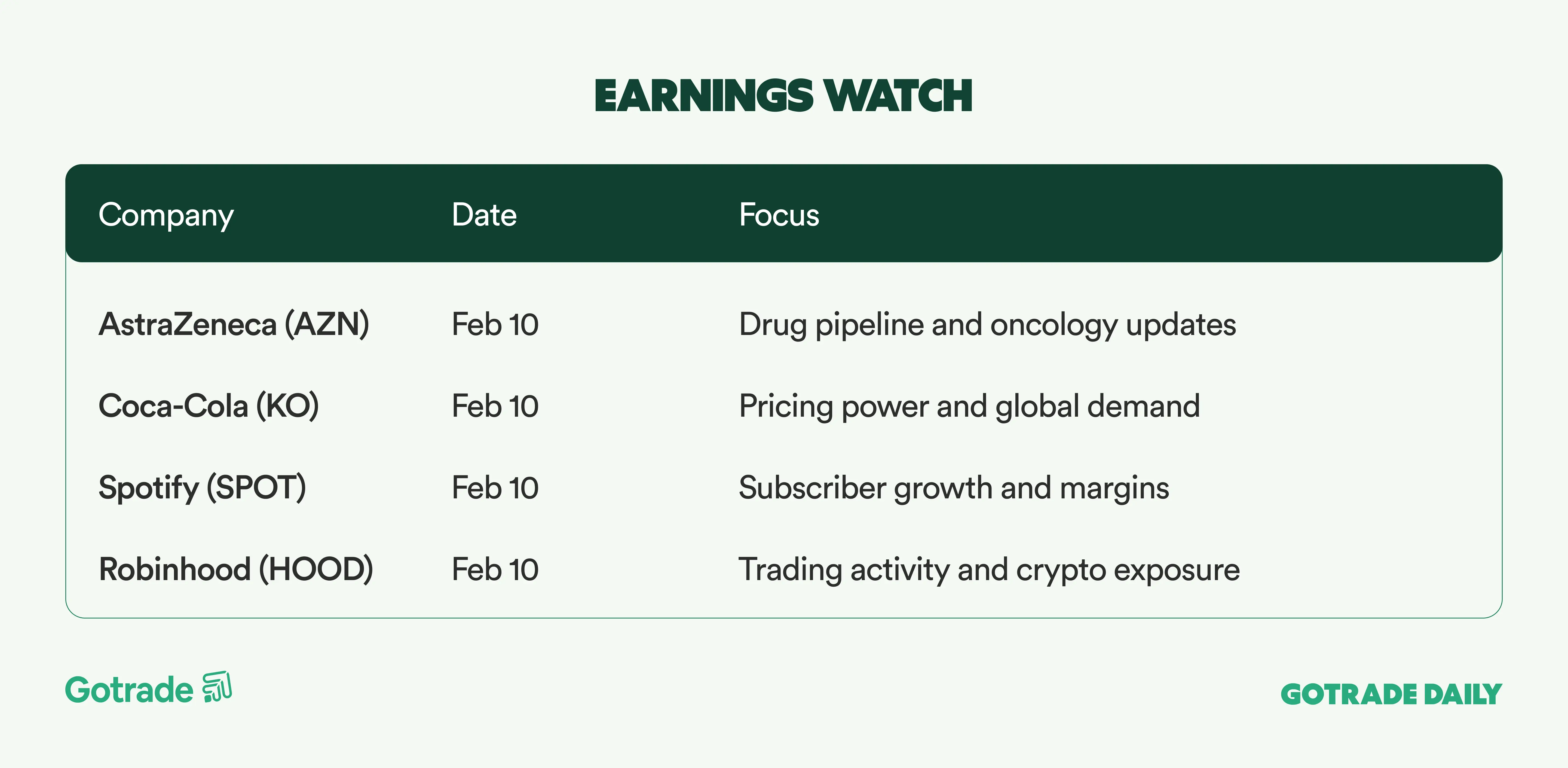 Consumer and platform companies are also in focus. Coca-Cola (KO) and McDonald’s (MCD) are expected to provide insight into pricing power and customer mix, while Ford (F), Honda (HMC), and Ferrari (RACE) will shed light on global auto demand. In parallel, results from Marriott (MAR) and Airbnb (ABNB) will be watched for travel trends, and trading platforms Robinhood (HOOD) and Coinbase (COIN) remain under scrutiny amid recent weakness across bitcoin and crypto-linked assets.