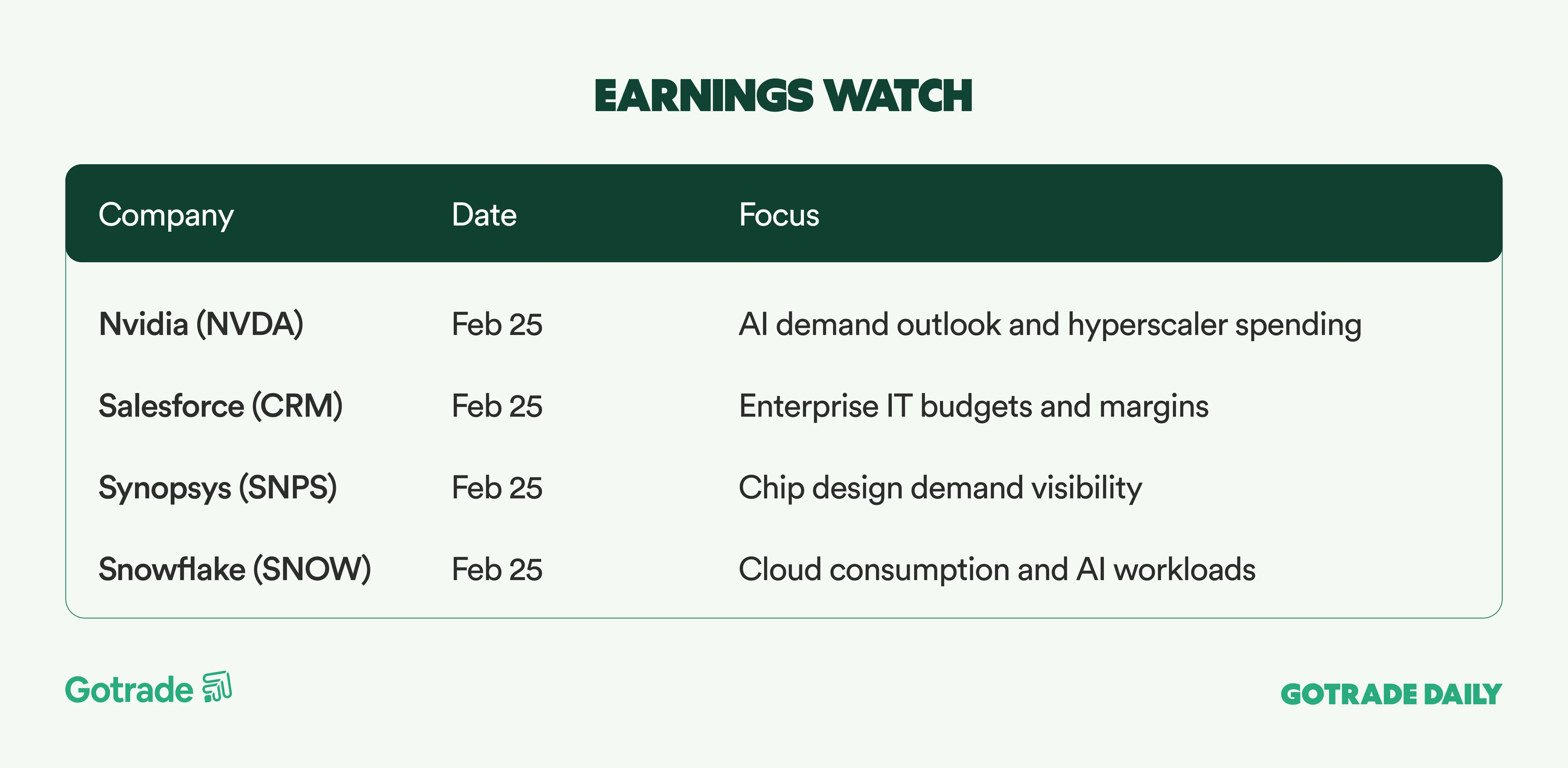 Attention now shifts squarely to Nvidia’s earnings, which have become a major market-moving event. As the most influential semiconductor company and a core supplier to hyperscalers, its guidance is expected to shape sentiment across chips, cloud infrastructure, and software stocks alike.