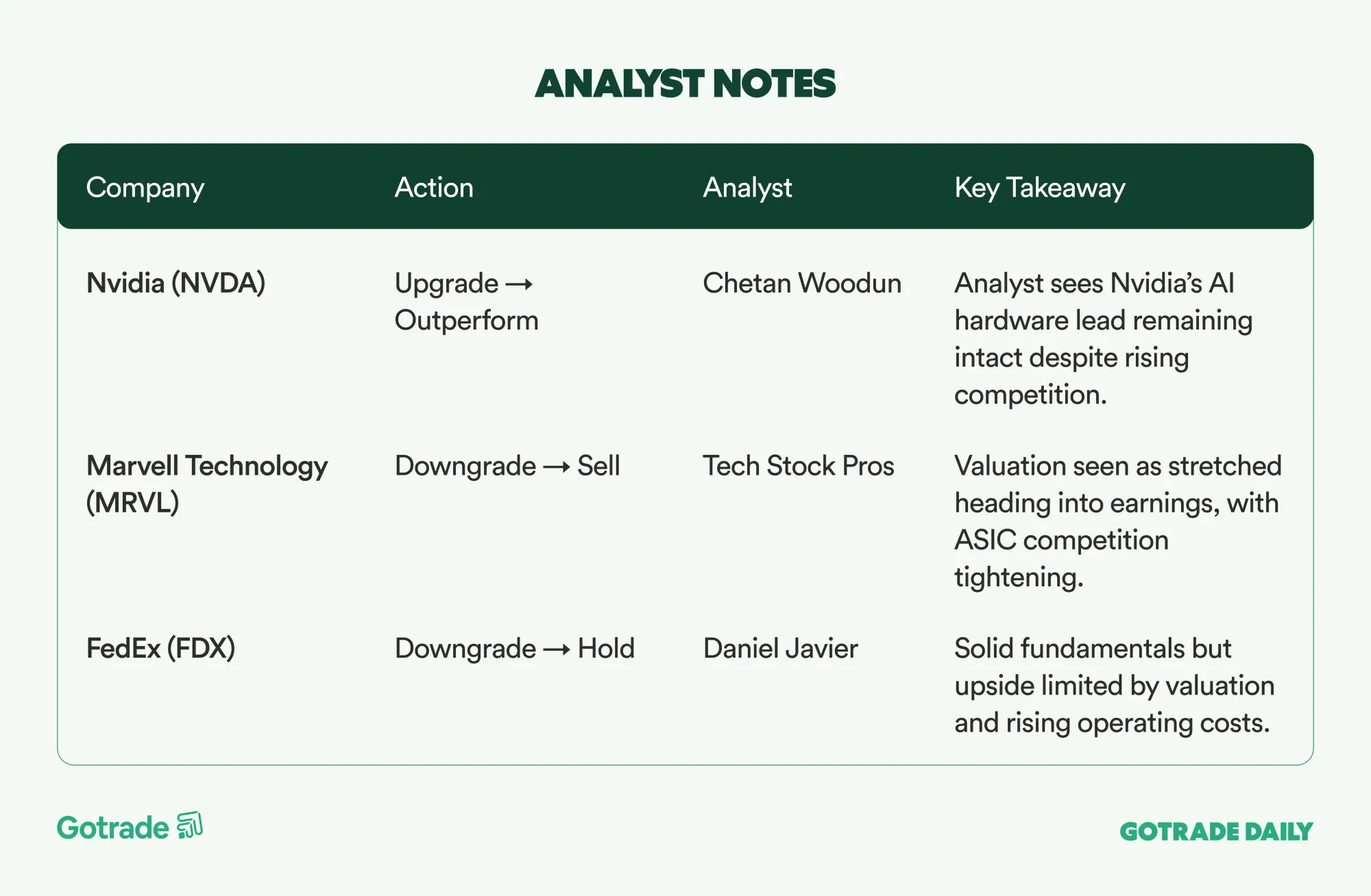 Bitcoin’s 7 percent rally back above 90,000 dollars lifted sentiment across crypto-linked names after its worst day since March. The recovery supported a broader shift toward growth and AI beneficiaries, reversing part of Monday’s risk-off move. Nvidia (NVDA) climbed nearly 1 percent, while Credo Technology (CRDO) surged 10 percent after delivering stronger-than-expected results.