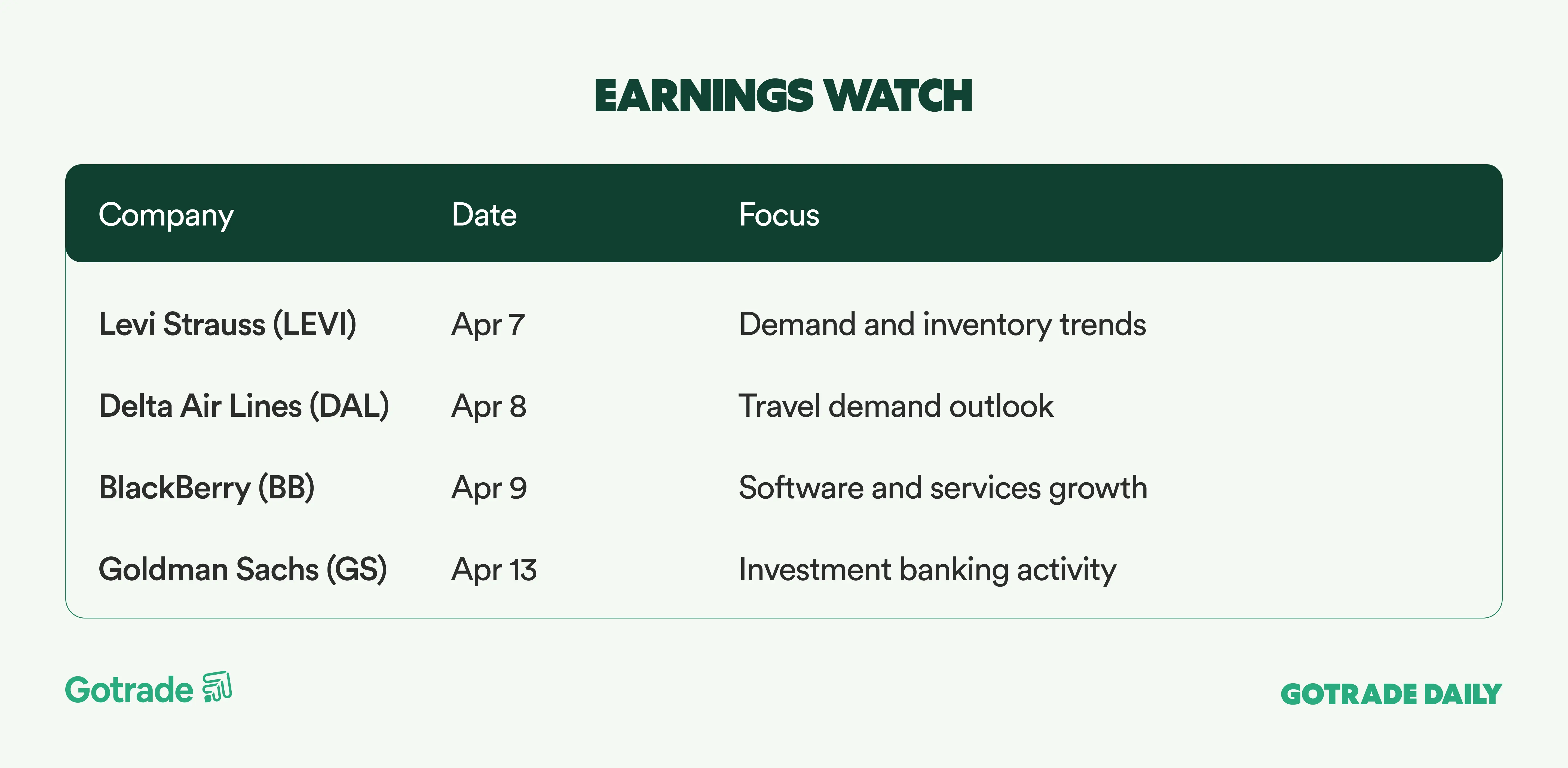 At the same time, macro data will play a key role in shaping sentiment. Investors are closely watching the upcoming Consumer Price Index (CPI) report, which is expected to reflect the early impact of rising oil prices on inflation. Earnings season also begins to pick up, with companies like Delta Air Lines (DAL) and Constellation Brands set to provide insight into consumer demand and cost pressures.