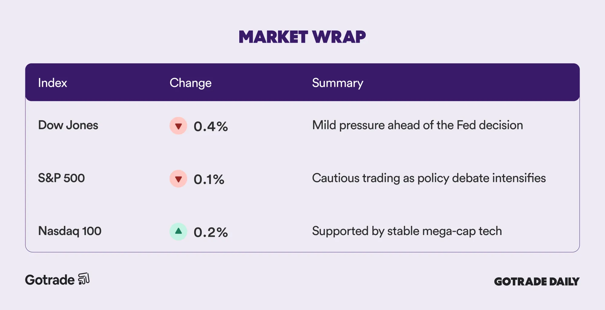 Markets are holding steady ahead of the Fed, with traders watching how today’s decision shapes expectations for 2026. Sentiment may shift quickly as Powell speaks and the new dot plot is released.