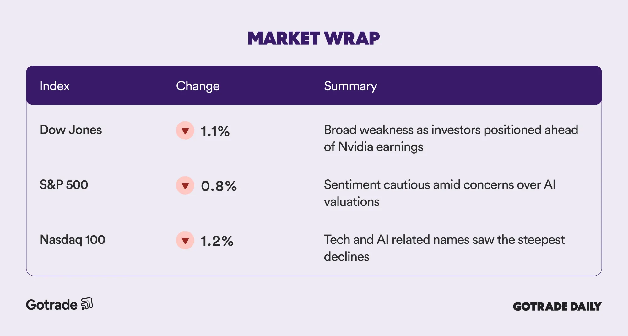 A lot is at stake as Nvidia prepares to report earnings. The company’s quarterly update is widely viewed as the most important event of this earnings season, with the potential to sway not only AI related names but the broader U.S. market. Expectations are extremely high for the world’s most valuable public company. Any result that falls short could trigger sharp price swings across indexes and funds heavily exposed to AI.