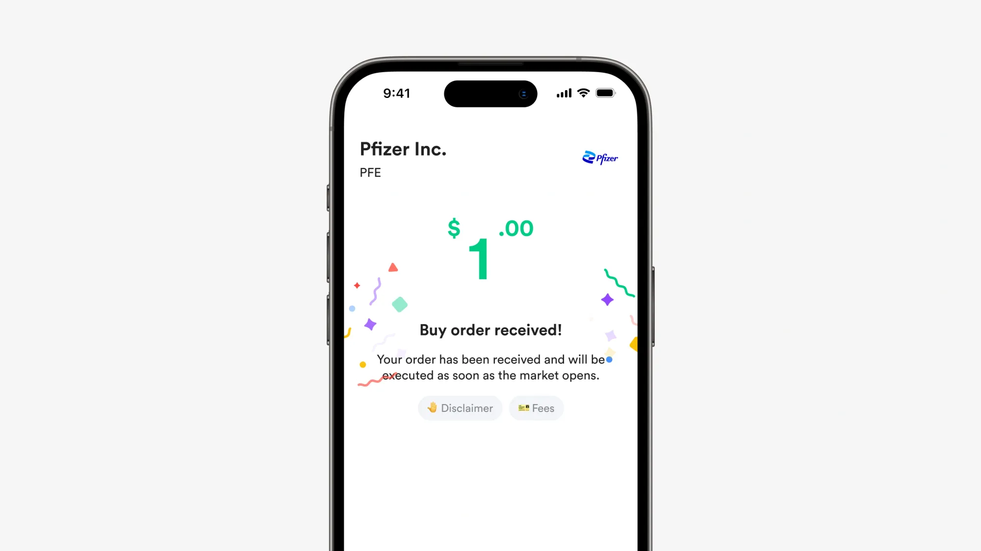 - Setelah transaksi berhasil, Pfizer akan muncul di portofolio kamu.