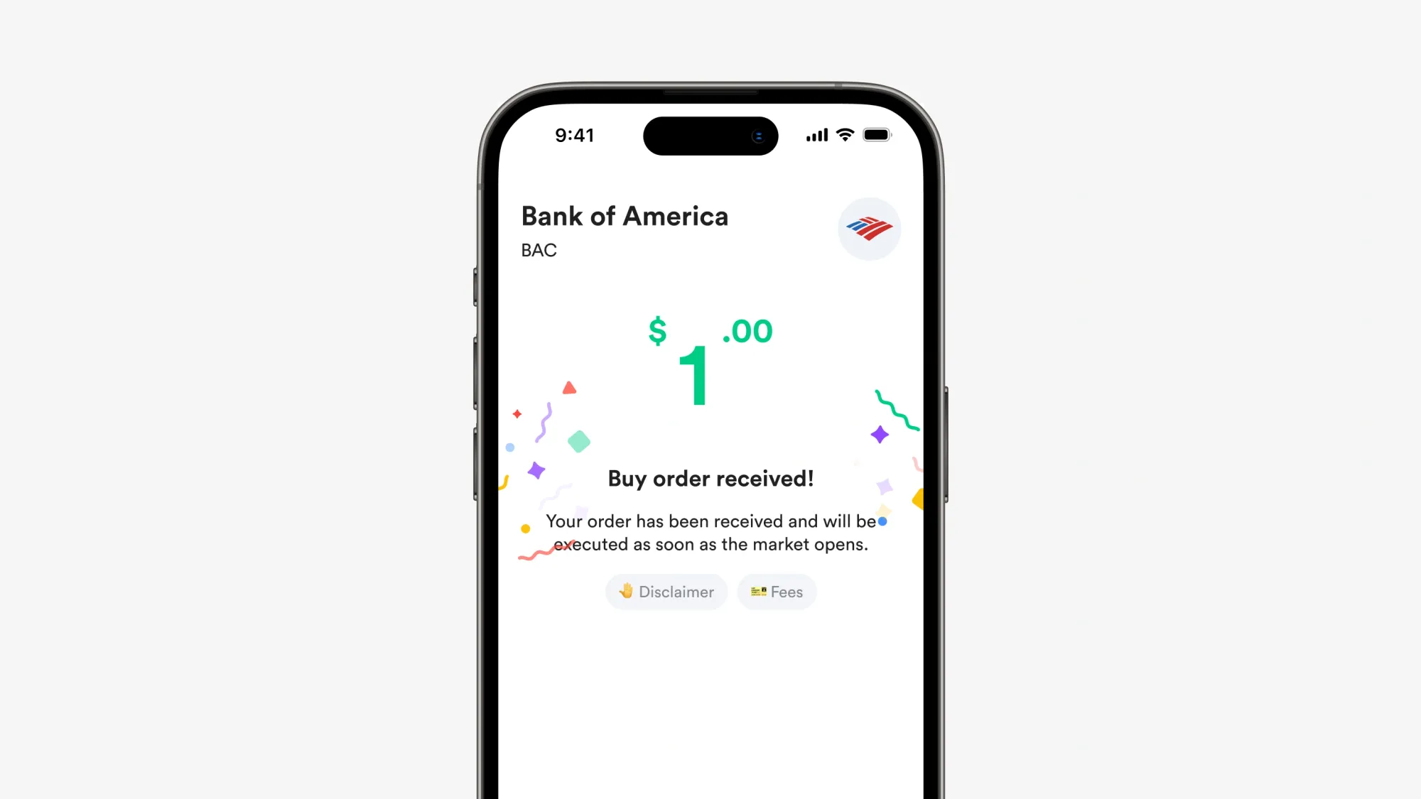 - Setelah transaksi berhasil, Bank of America akan muncul di portofolio kamu.