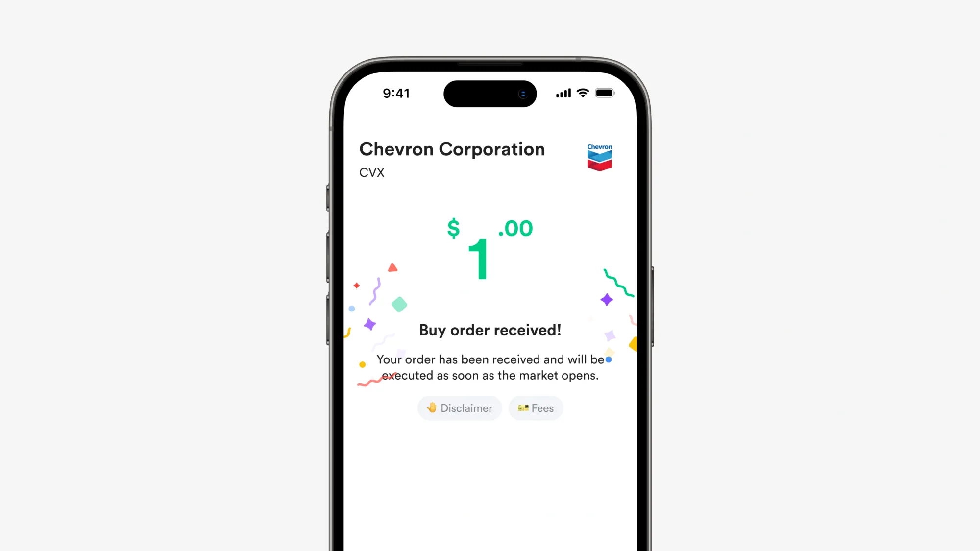 - Setelah transaksi berhasil, Chevron akan muncul di portofolio kamu.