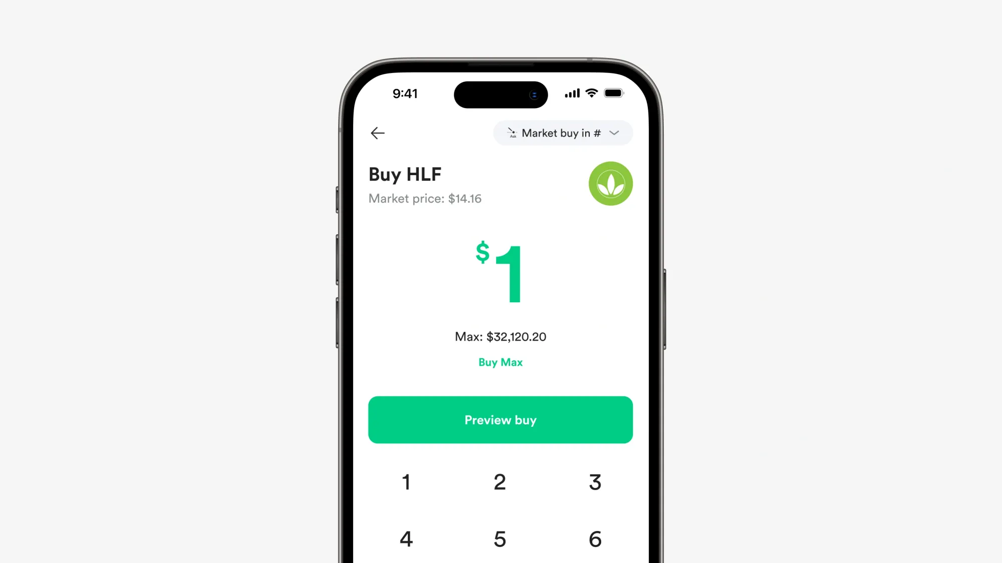1. Buka Gotrade, cari Herbalife (HLF) di kolom pencarian, masuk ke halaman grafik dan pilih buy.