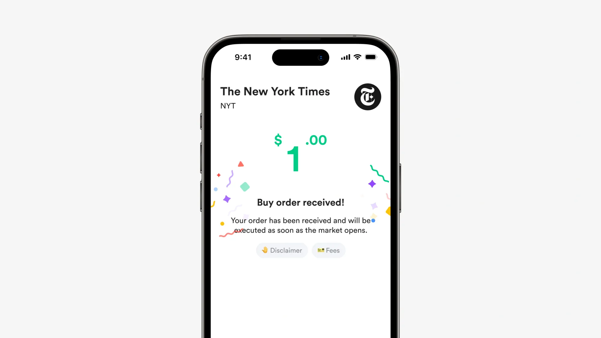 - Setelah transaksi berhasil, New York Times akan muncul di portofolio kamu.