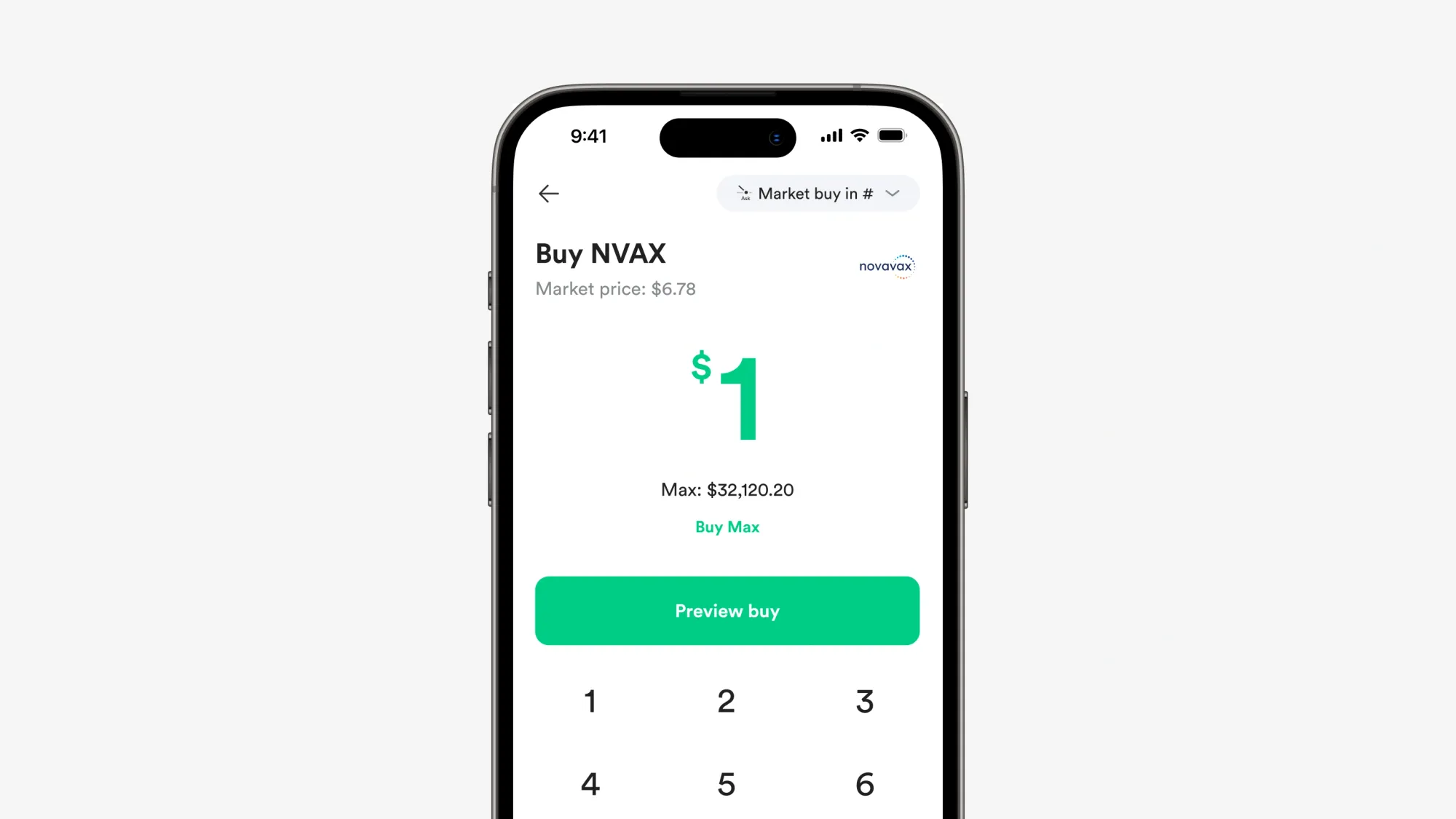 1. Buka Gotrade, cari Novavax (NVAX) di kolom pencarian, masuk ke halaman grafik dan pilih buy.