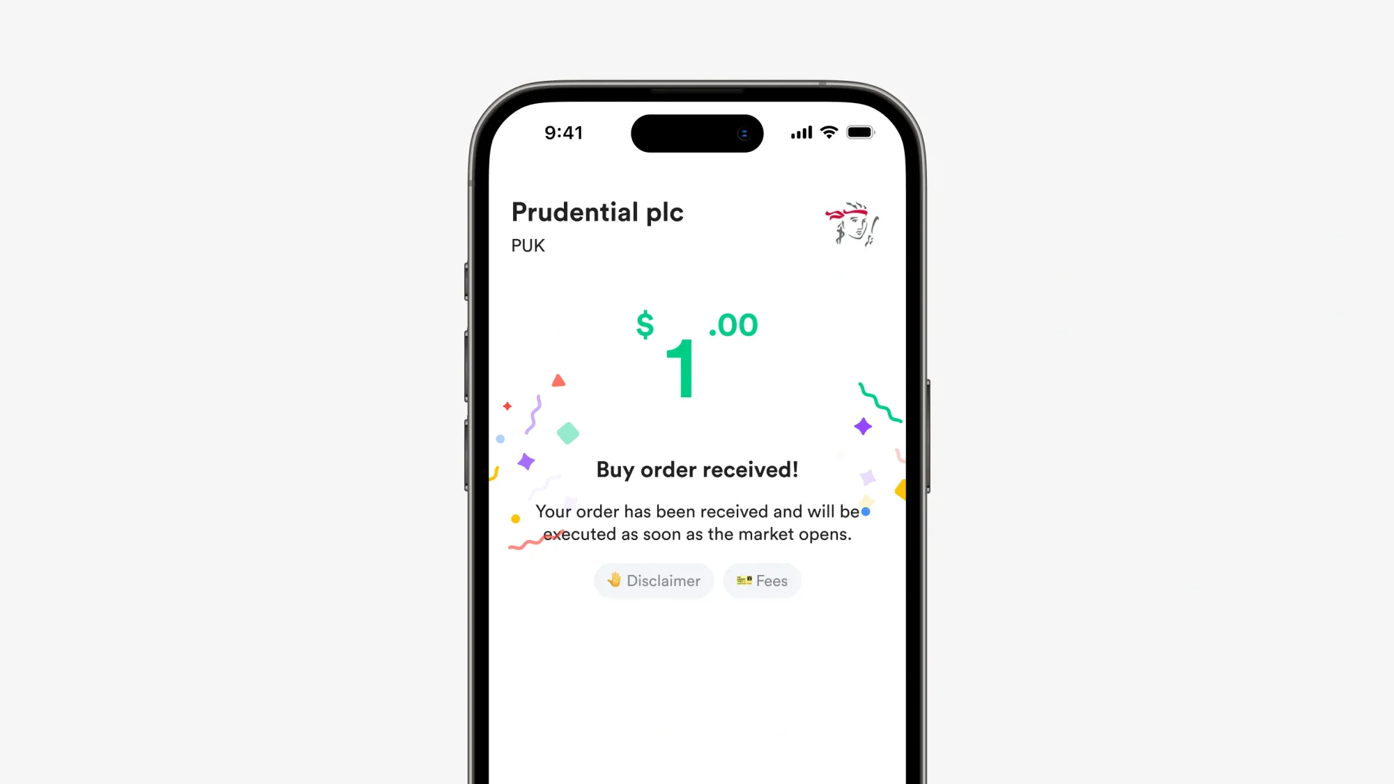 1. Buka Gotrade, cari Prudential (PUK) di kolom pencarian, masuk ke halaman grafik dan pilih buy.