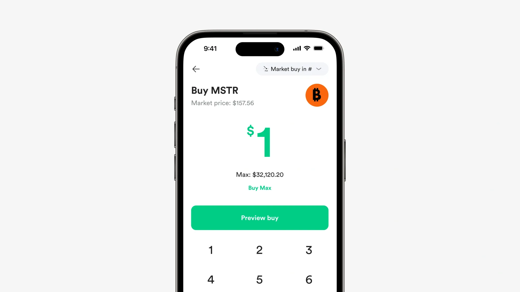 2. Masukkan nominal pembelian (dalam USD atau jumlah shares), lalu klik preview buy.