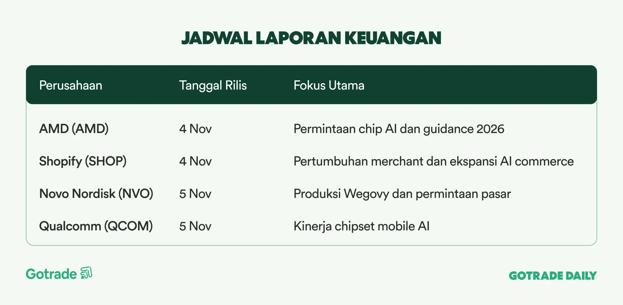 Amazon (AMZN) naik 4% setelah OpenAI menandatangani kesepakatan besar senilai US$38 miliar untuk menggunakan kapasitas komputasi AWS, menjadikannya kerja sama pertama antara dua raksasa AI dan cloud.
