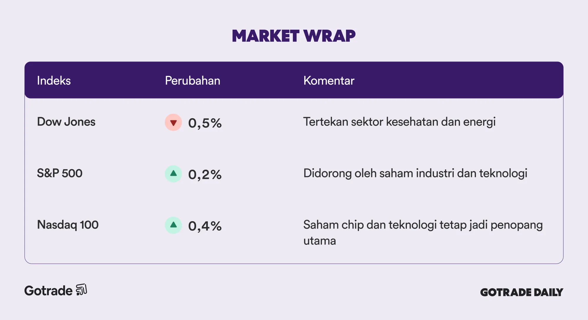Saham teknologi mendorong penguatan S&P 500 dan Nasdaq. Sementara itu, Dow Jones justru melemah, menandakan bagaimana sektor teknologi terus tumbuh lebih cepat dibandingkan sektor kesehatan dan energi.