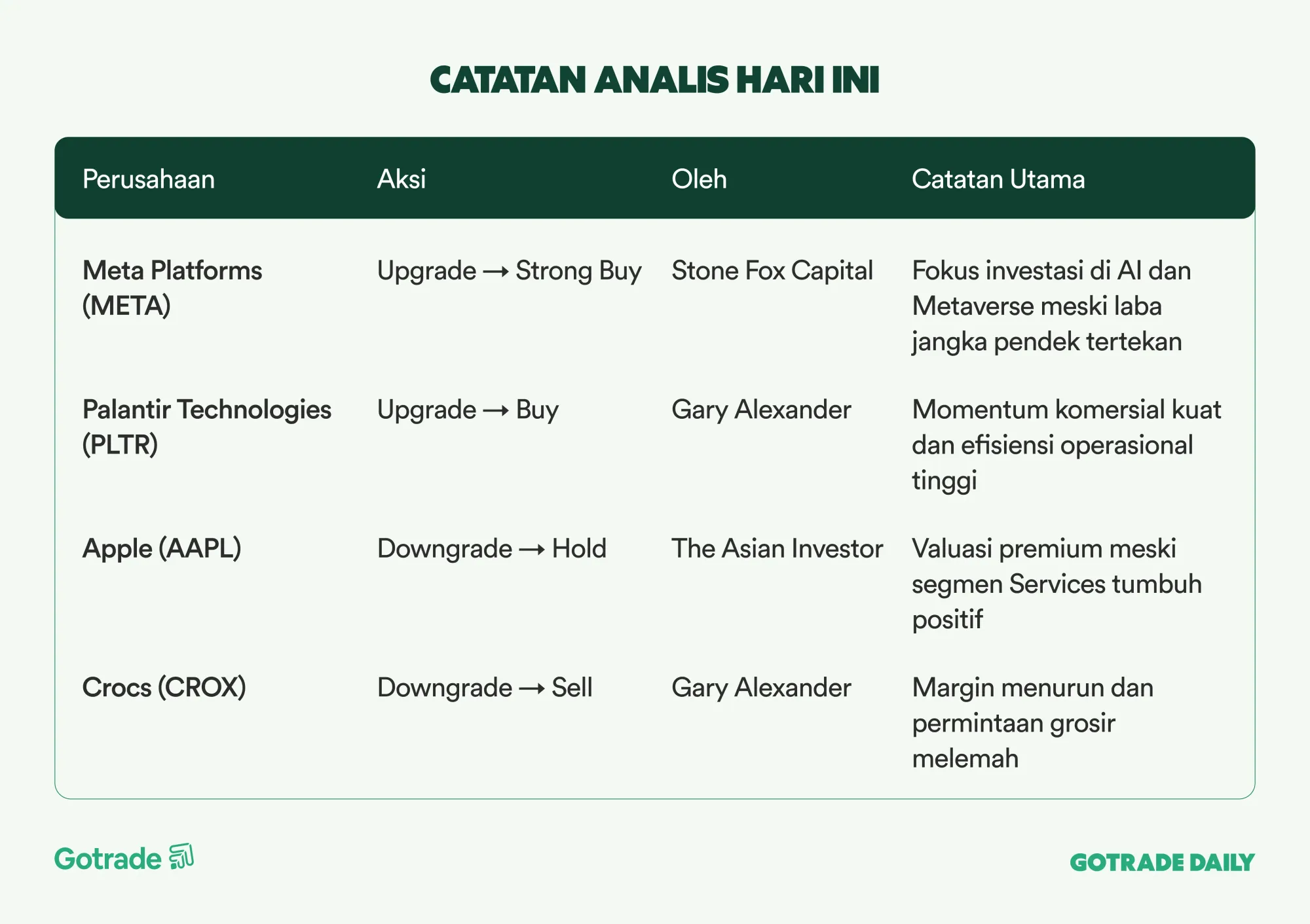 Catatan Analis Hari Ini