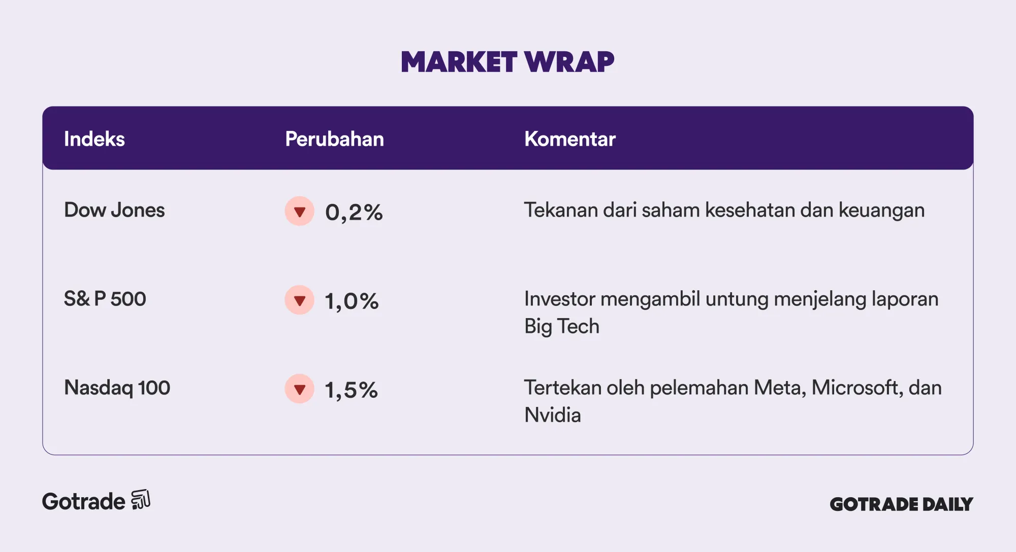 Apple (AAPL) naik 2.3% setelah membukukan pendapatan US$102.5 miliar (+8% YoY) dan EPS US$1.85, rekor baru untuk kuartal September.