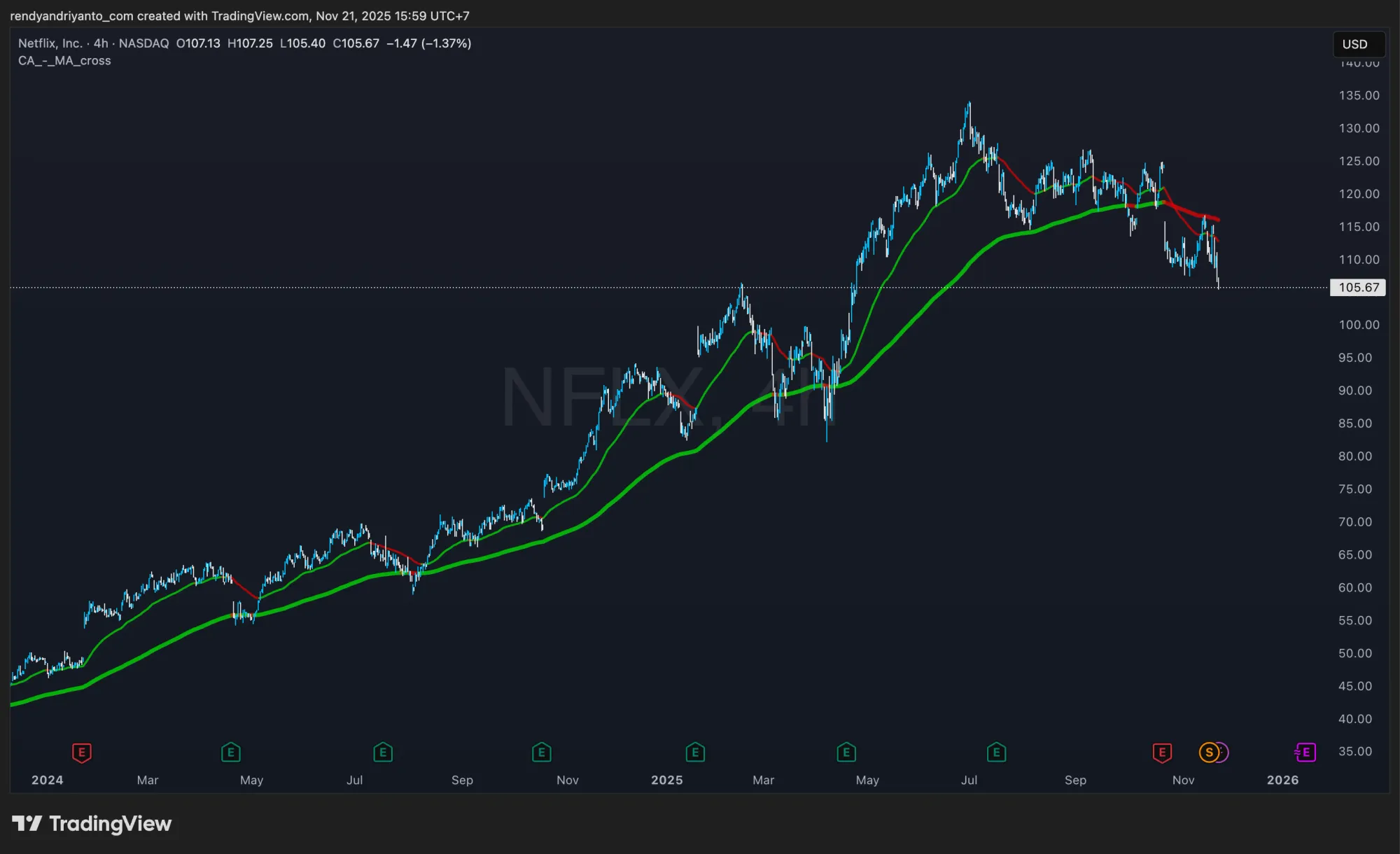 - MA yang miring ke bawah menandakan momentum negatif.