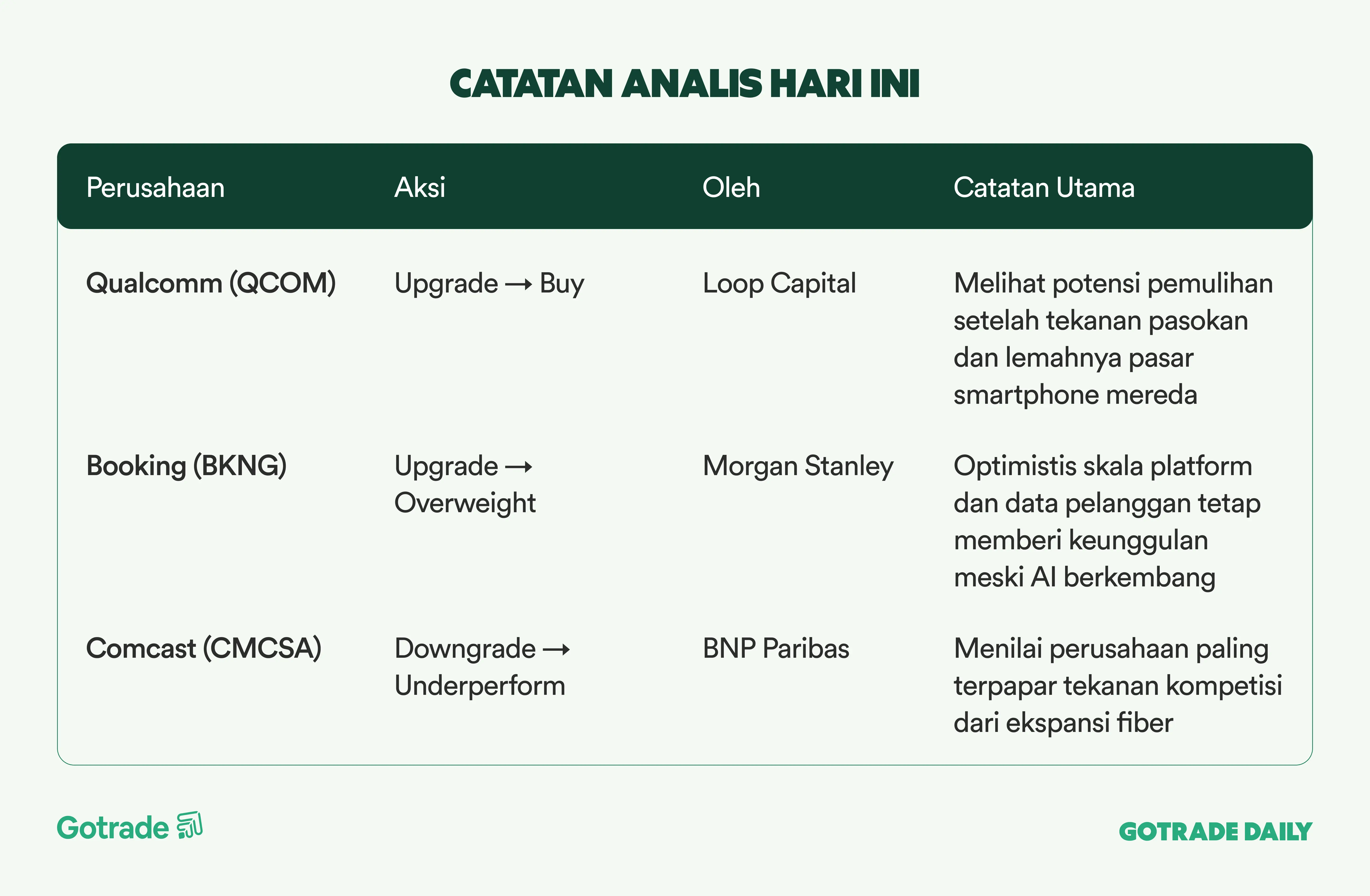 Advanced Micro Devices (AMD) melonjak 8,8% setelah Meta Platforms (META) mengumumkan kerja sama multiyear untuk mengerahkan hingga 6 gigawatt GPU AMD ke pusat data AI. Meta juga akan melakukan investasi berbasis kinerja yang dapat mencakup hingga 160 juta saham AMD, memperkuat keyakinan pasar bahwa belanja infrastruktur AI masih solid.