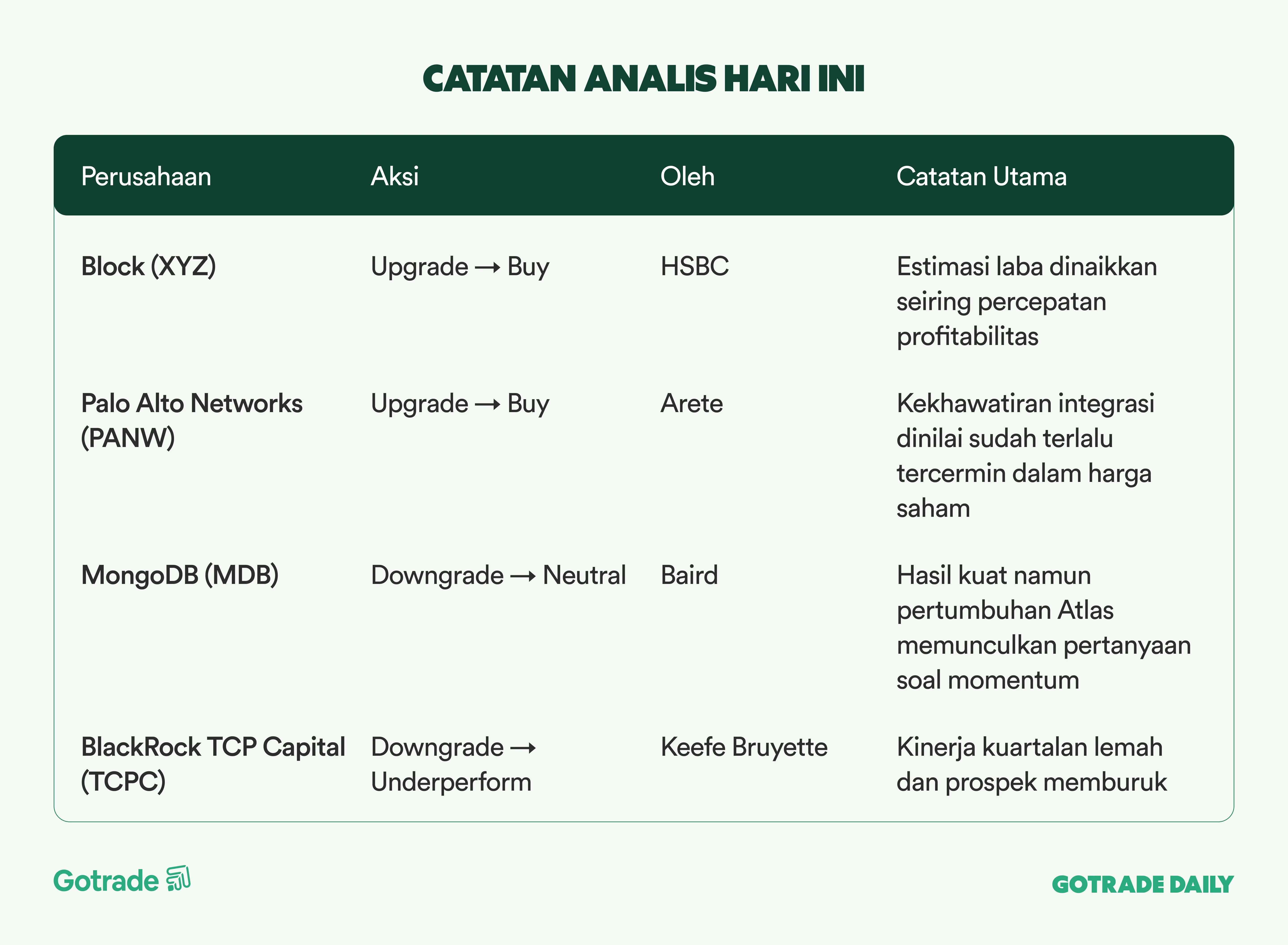 Salah satu pengecualian adalah Palantir Technologies (PLTR) yang masih menguat 1,4% setelah melonjak 5,8% pada sesi sebelumnya. Sekitar setengah pendapatan Palantir berasal dari kontrak pemerintah, sehingga meningkatnya fokus pada belanja pertahanan dan keamanan nasional turut mendorong saham ini naik sekitar 13% dalam empat hari terakhir.