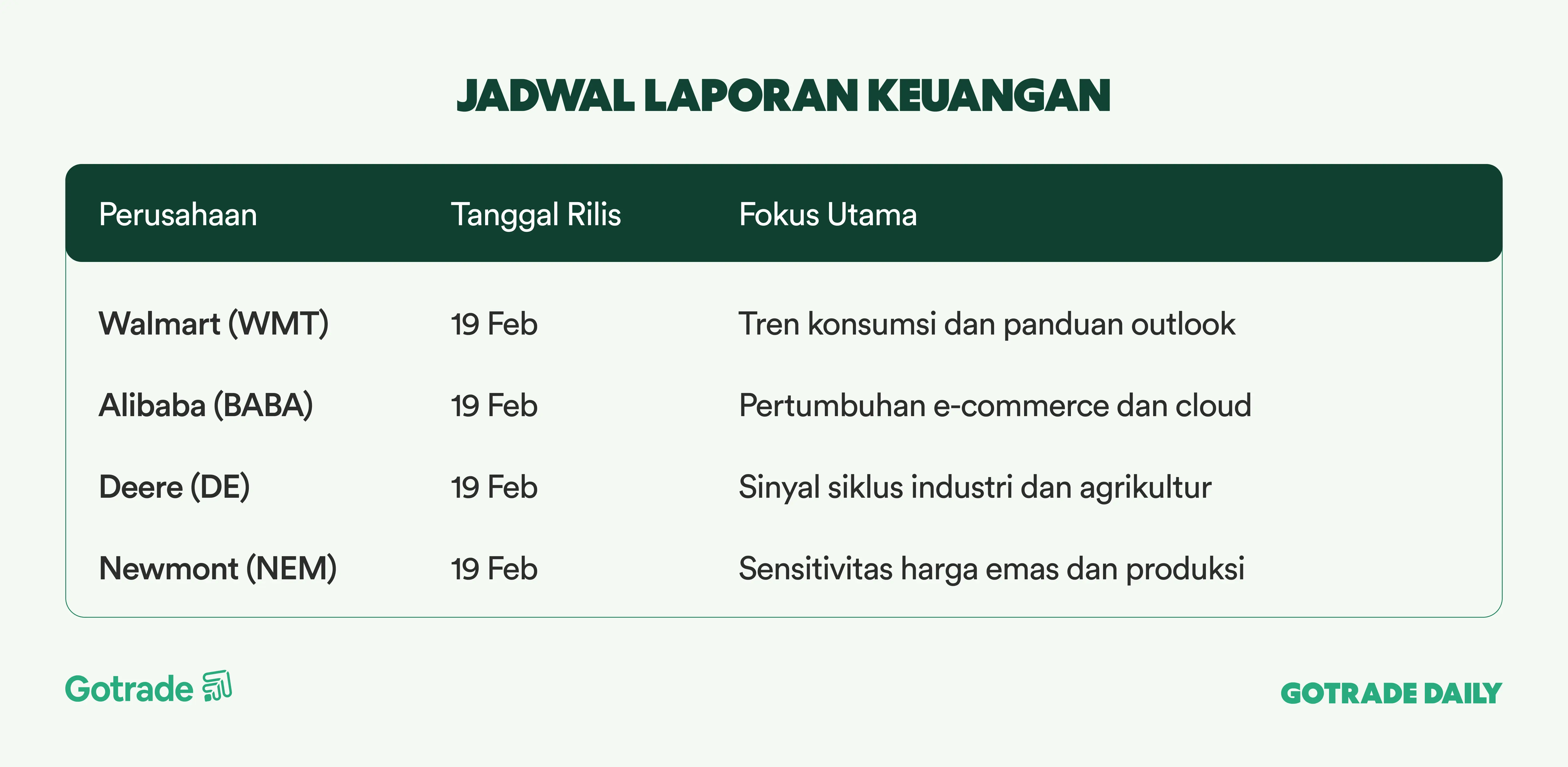 Sentimen terhadap mega-cap juga menguat. Amazon (AMZN) naik hampir 2% setelah Pershing Square dilaporkan menambah kepemilikannya sebesar 65% pada kuartal keempat, menjadikannya salah satu posisi terbesar dalam portofolio fund tersebut. Pergerakan ini mencerminkan keyakinan bahwa pelemahan sebelumnya mungkin berlebihan dan bahwa fundamental laba perusahaan platform besar tetap solid.