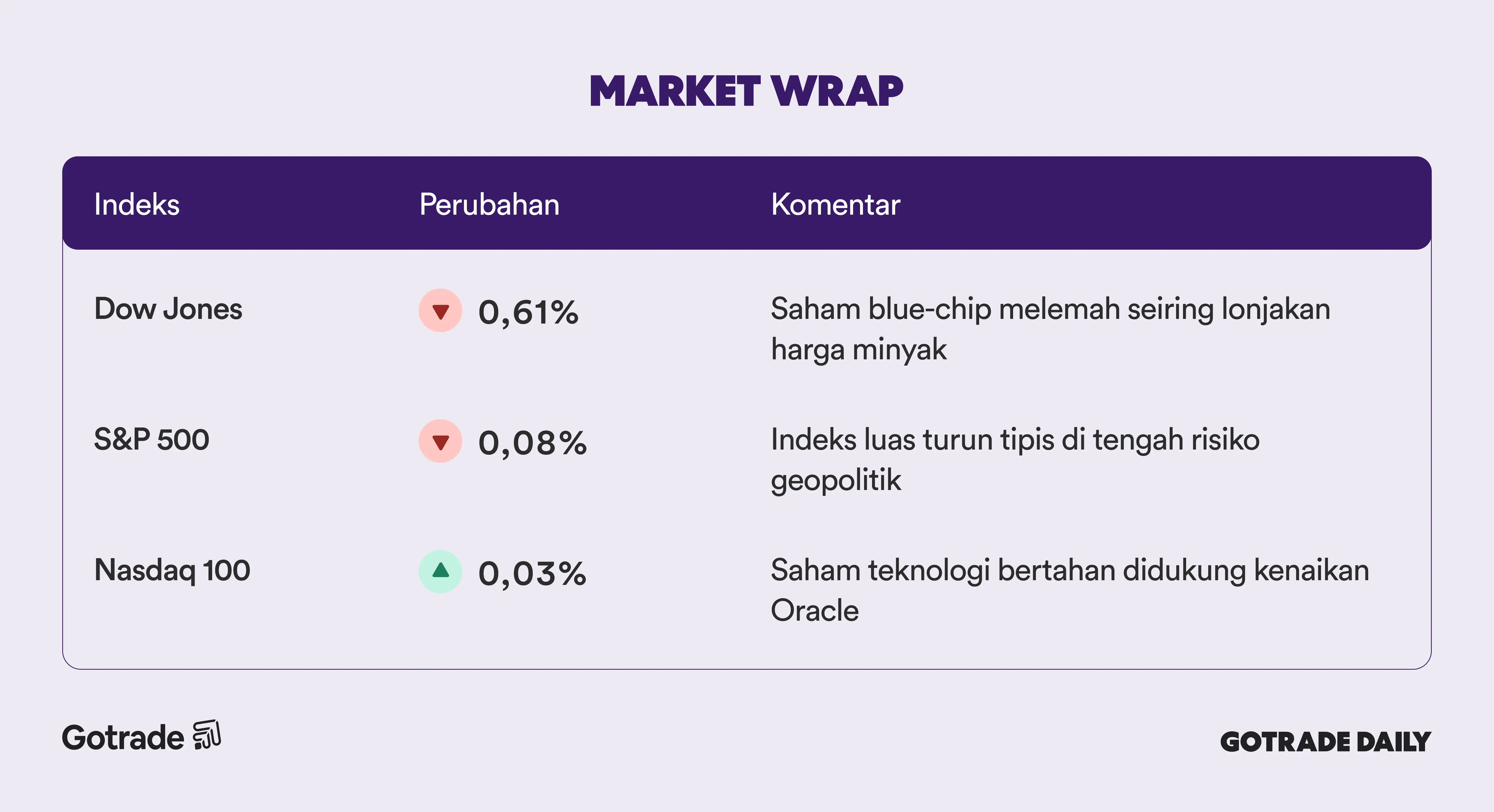 Dengan harga minyak yang masih bergejolak, data inflasi yang stabil, serta permintaan AI yang terus mendukung sektor teknologi, investor kemungkinan akan terus mencermati perkembangan energi dan geopolitik dalam beberapa sesi perdagangan ke depan.