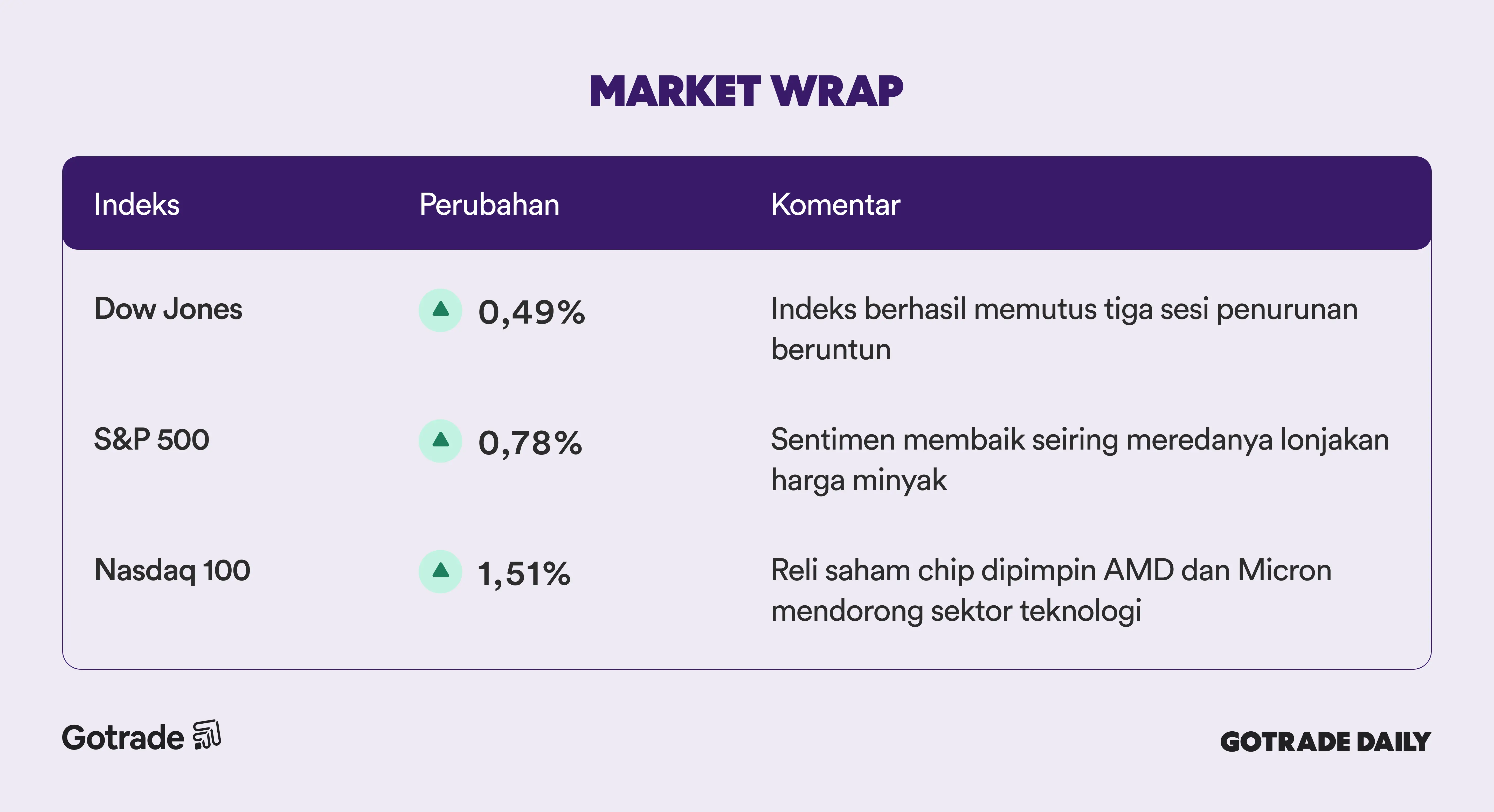 Dengan risiko geopolitik yang masih berkembang dan data ekonomi menunjukkan ketahanan, investor akan terus memantau apakah kepemimpinan sektor teknologi dan stabilnya harga energi dapat mempertahankan momentum pasar dalam beberapa sesi ke depan.