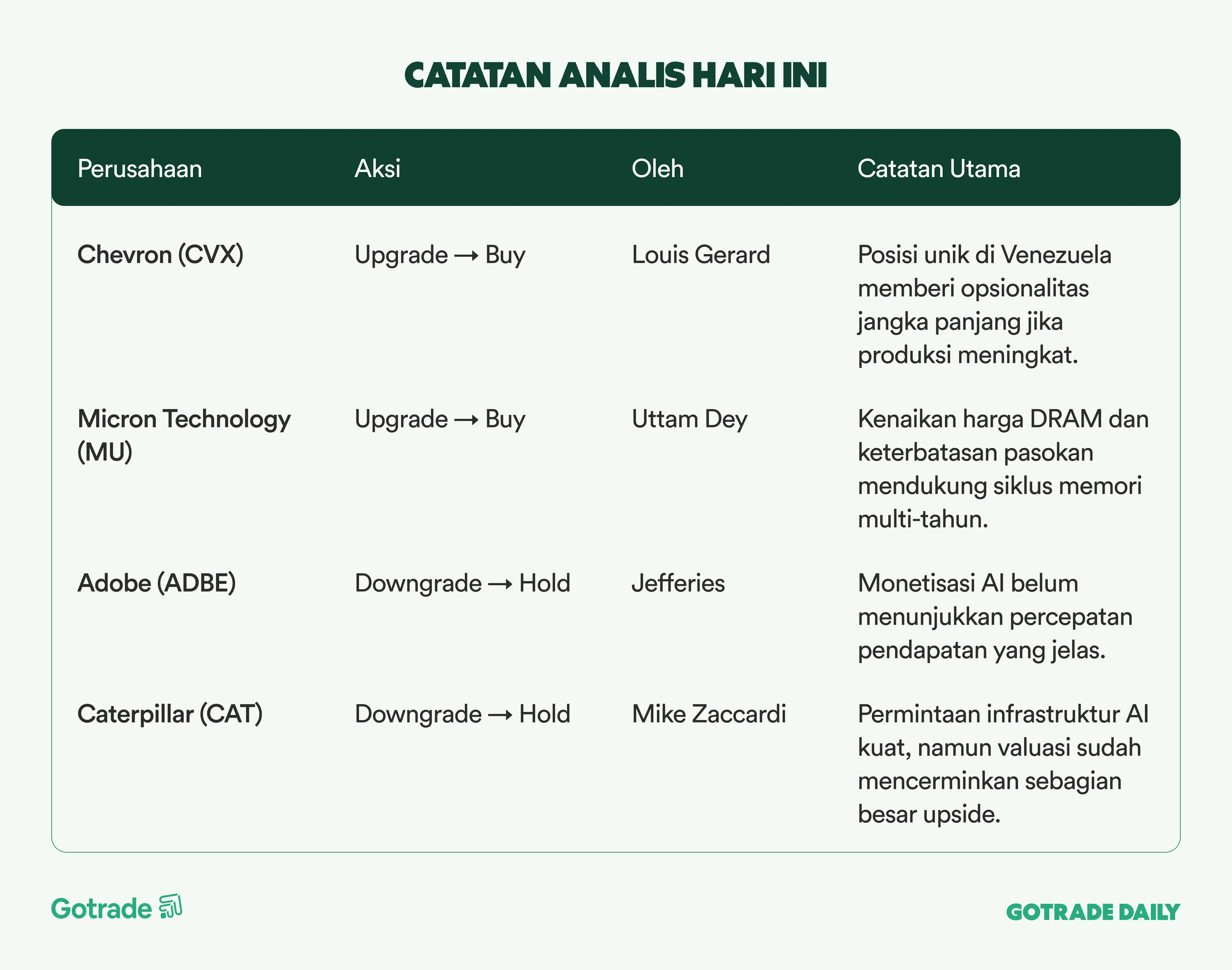 Pasar memulai 2026 dengan momentum kuat, dipimpin sektor energi dan aset berbasis komoditas seiring meningkatnya perhatian pada risiko geopolitik. Perkembangan di Venezuela, arah harga minyak, dan rotasi sektor akan menjadi faktor utama yang memengaruhi positioning investor dalam beberapa minggu ke depan.