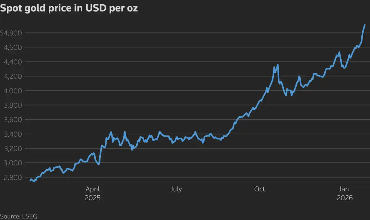 Reuters, Gold tops $4,900/oz; silver and platinum extend record‑setting rally. Diakses pada 22 Januari 2026