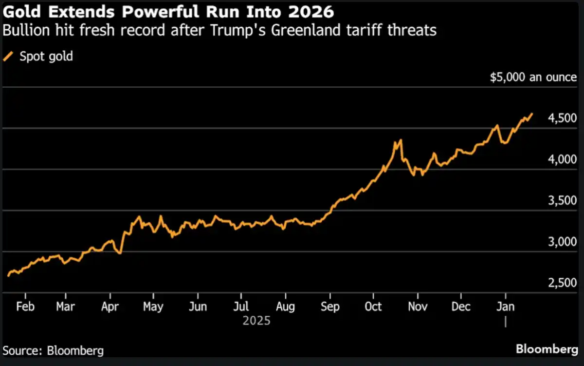 Ketegangan geopolitik terkait rencana akuisisi Greenland ini memicu kekhawatiran perang dagang baru yang mendorong investor memburu aset aman.
