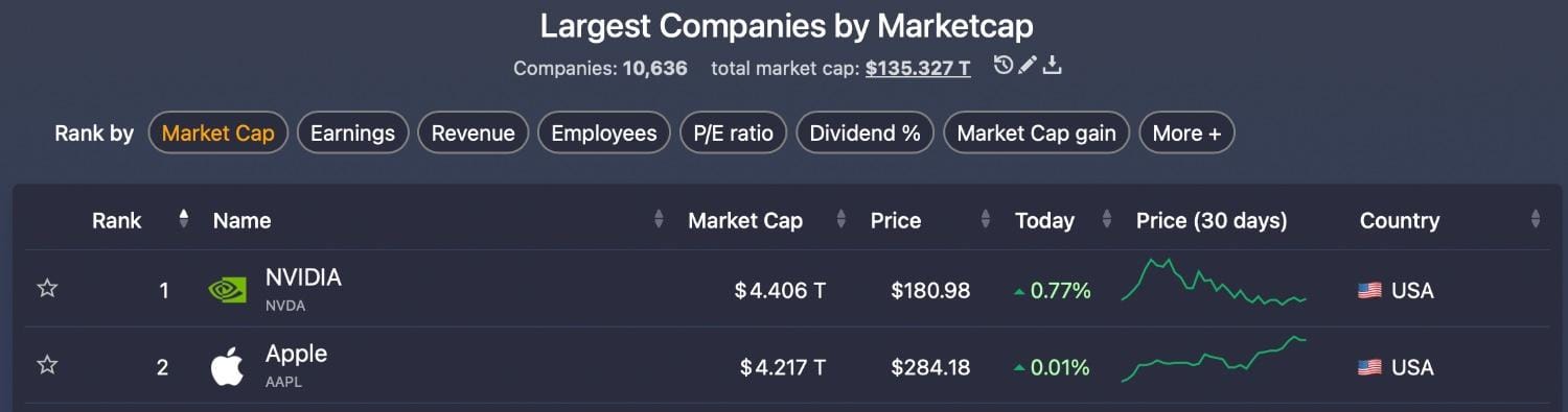 [Saran penempatan gambar: Masukkan tabel "Largest Companies by Marketcap" dari sumber berita di sini untuk membandingkan posisi Nvidia dan Apple]
