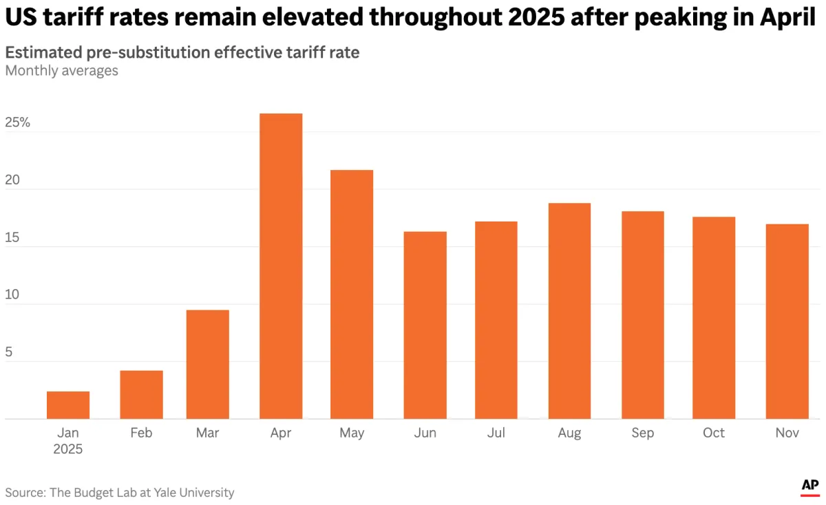 - Rata-rata tarif impor AS mencapai 17 persen pada November, level tertinggi sejak 1935.