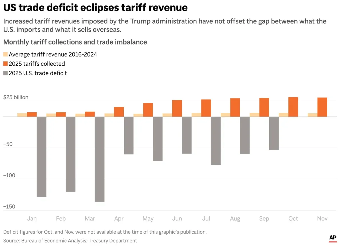 - AP News, Trump overturned decades of US trade policy in 2025. See the impact of his tariffs, in four charts, . Diakses pada 30 Desember 2025