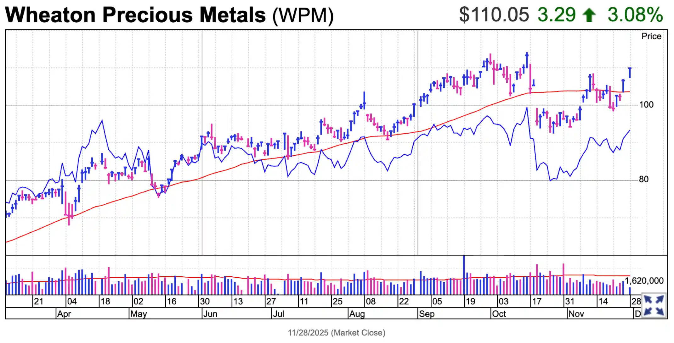 Deutsche Bank memprediksi harga perak bisa mencapai $58,5 per ons pada akhir 2026 akibat pasokan yang ketat. Saham WPM sendiri melonjak 3,1% ke 110,05 pada hari Jumat dan berhasil melewati titik beli 108,68.