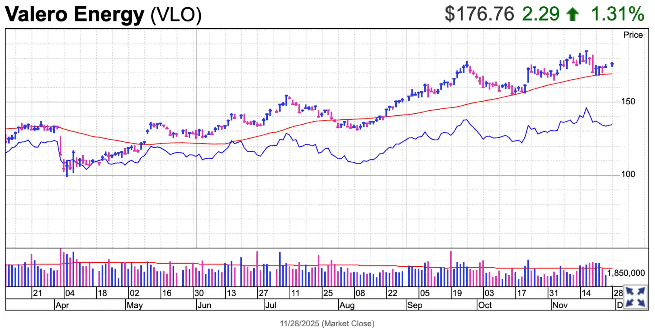 Erste Group juga memberikan peringkat beli untuk VLO karena kemampuan kilang mereka yang kompleks dalam mengubah minyak mentah murah menjadi produk berkualitas tinggi seperti diesel. Saham VLO sedang mencoba untuk kembali ke titik beli basis datar di level 178,43.
