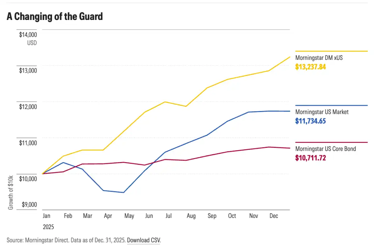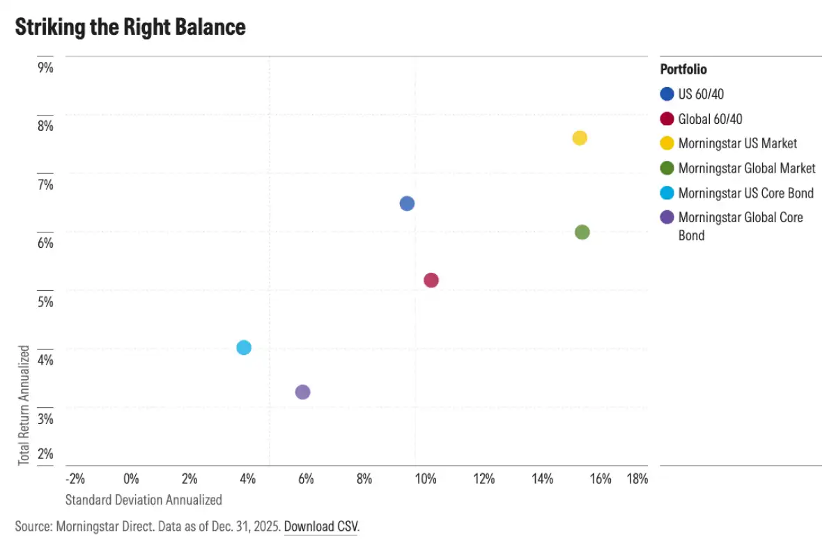 Menurut laporan dari Morningstar, portofolio Global 60/40 berhasil mencetak kenaikan 16 persen dan mencapai rekor tertinggi baru pada akhir 2025. Angka ini mengungguli portofolio yang hanya berfokus pada pasar AS yang tumbuh sebesar 13 persen di periode yang sama.