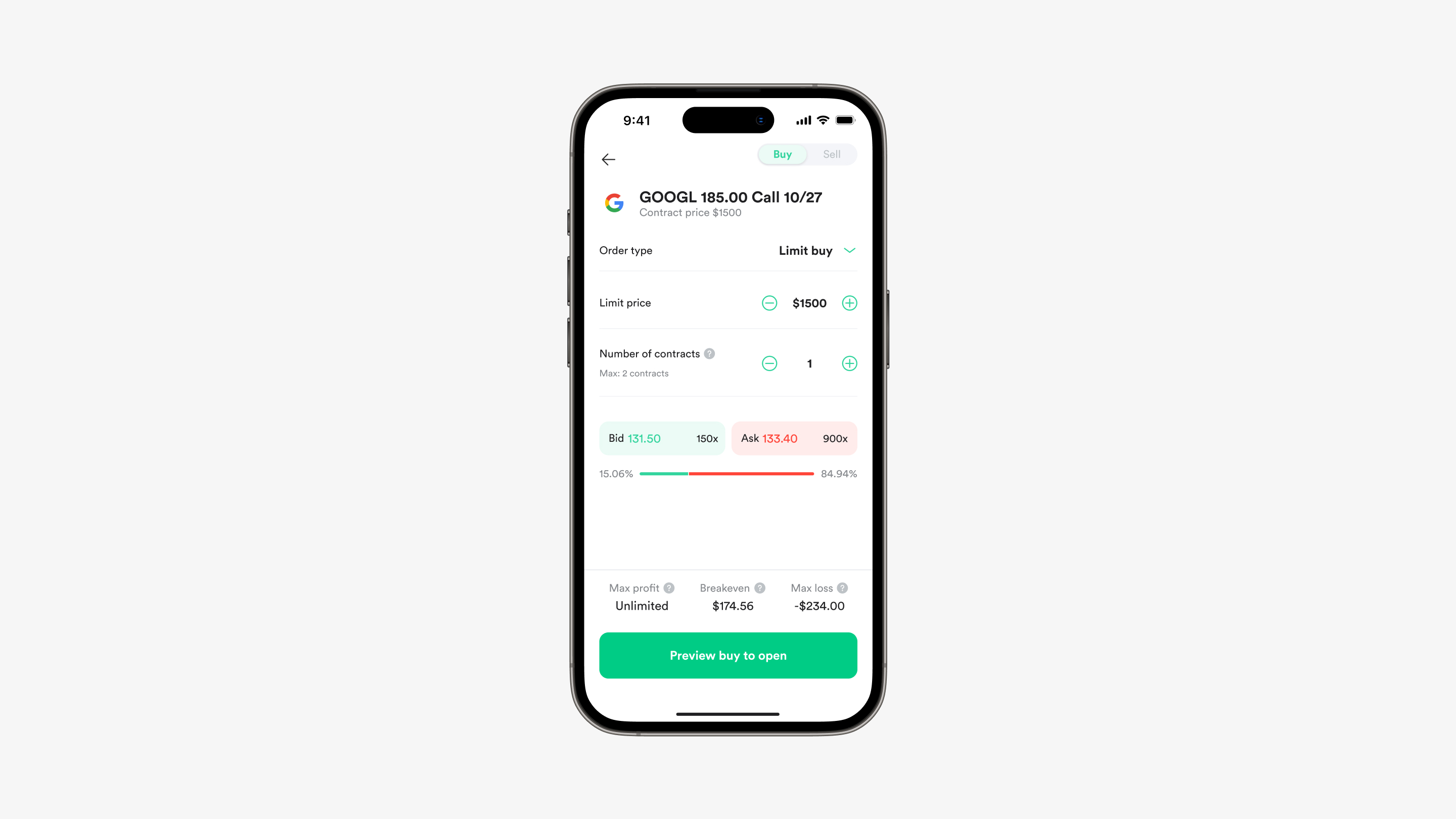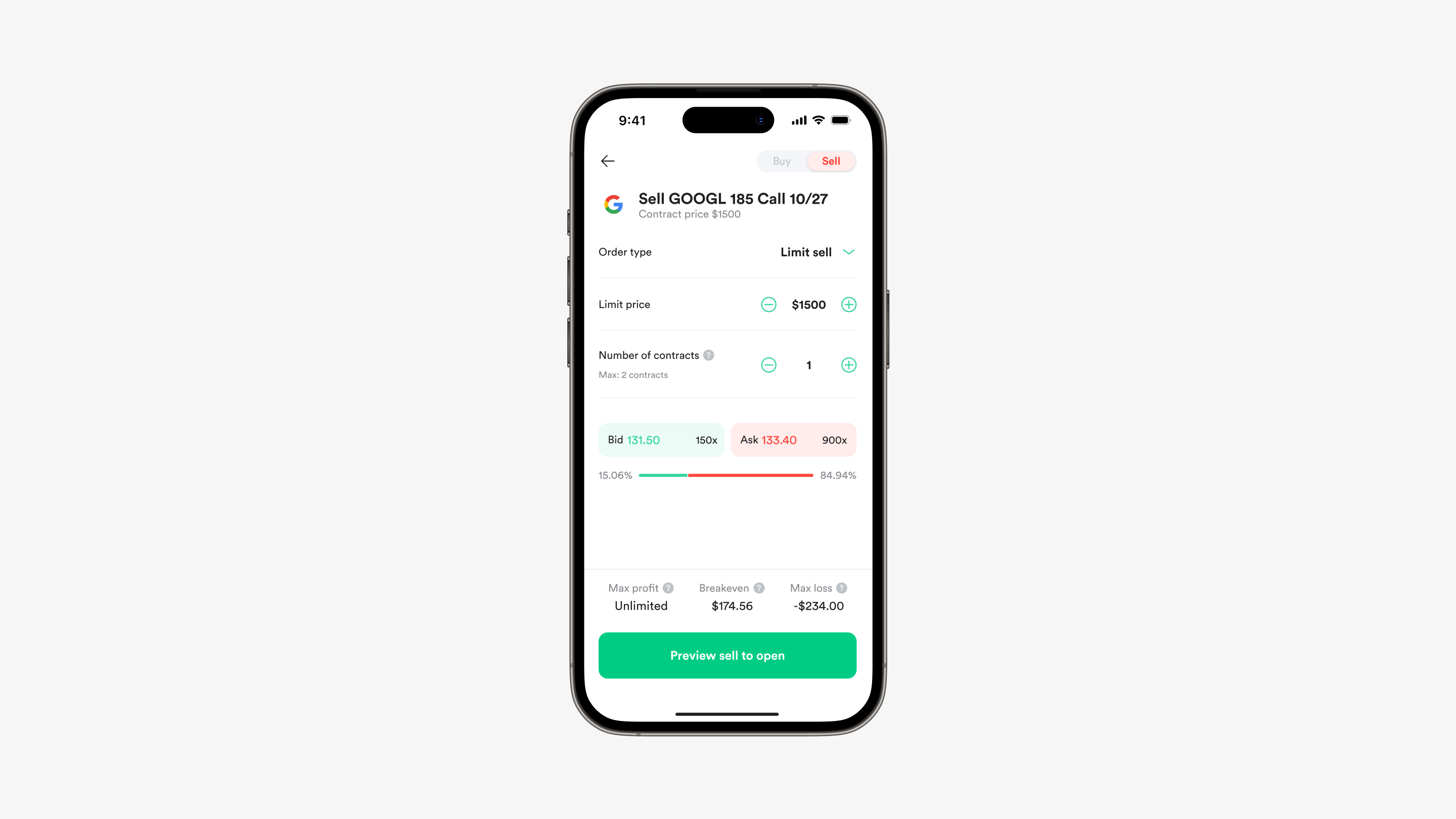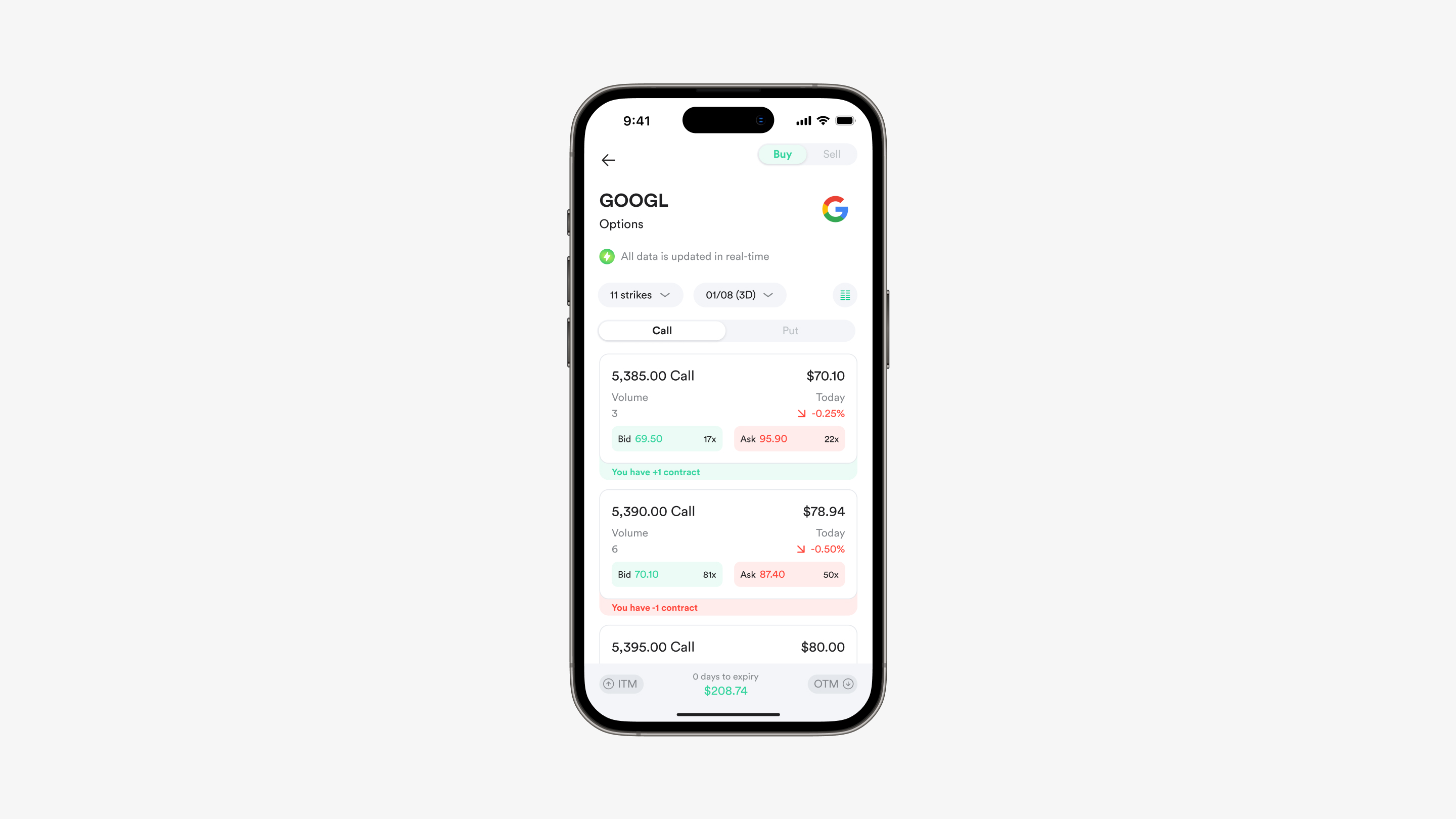 Gambar di atas adalah simulasi saat kamu memilih "Trade GOOGL Options".