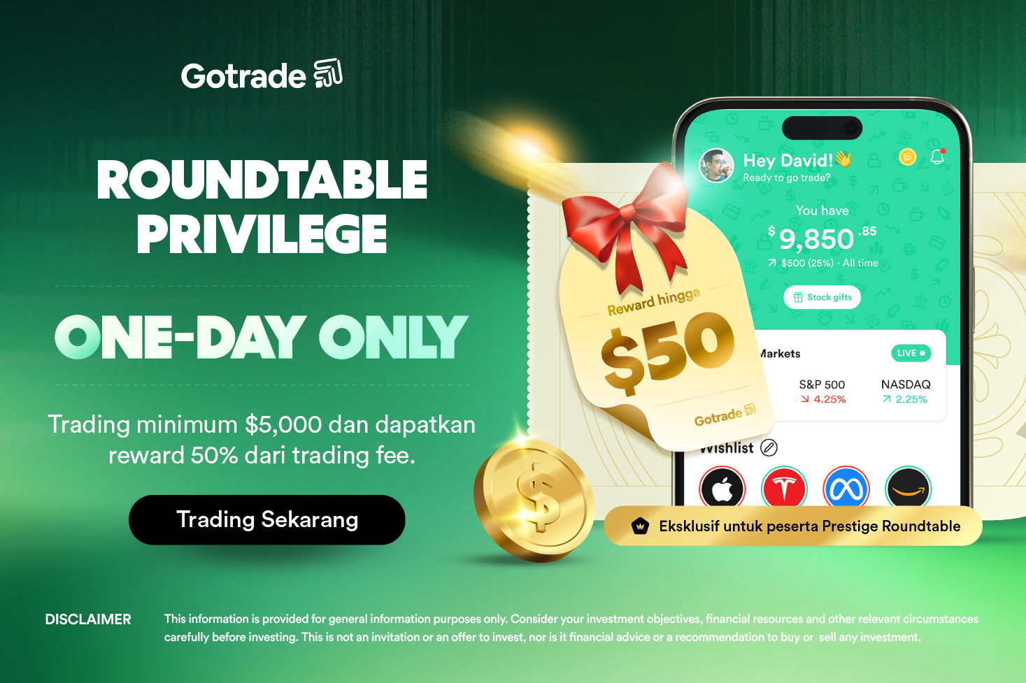 Gotrade adalah aplikasi finansial yang dilisensikan oleh PT Valbury Asia Futures, suatu Pialang Berjangka yang terdaftar dan diawasi Otoritas Jasa Keuangan (OJK) untuk produk derivatif keuangan dengan aset yang mendasari berupa Efek. Seluruh transaksi tercatat pada Bursa Berjangka Jakarta (JFX) dan Kliring Berjangka Indonesia (KBI). Perdagangan berjangka memiliki peluang dan resiko yang tinggi, termasuk kemungkinan kehilangan modal. Apabila Anda hendak berinvestasi dalam perdagangan berjangka, Anda terlebih dahulu harus mengerti dan memahami kegiatan perdagangan berjangka serta isi Perjanjian dan Peraturan Transaksi yang tersedia di sini. Materi yang disediakan di sini bersifat umum dan tidak memperhitungkan tujuan, situasi keuangan, atau kebutuhan Anda. Ini bukan penawaran, ajakan, atau saran untuk membeli atau menjual sekuritas, atau membuka rekening perantara di yurisdiksi mana pun.
