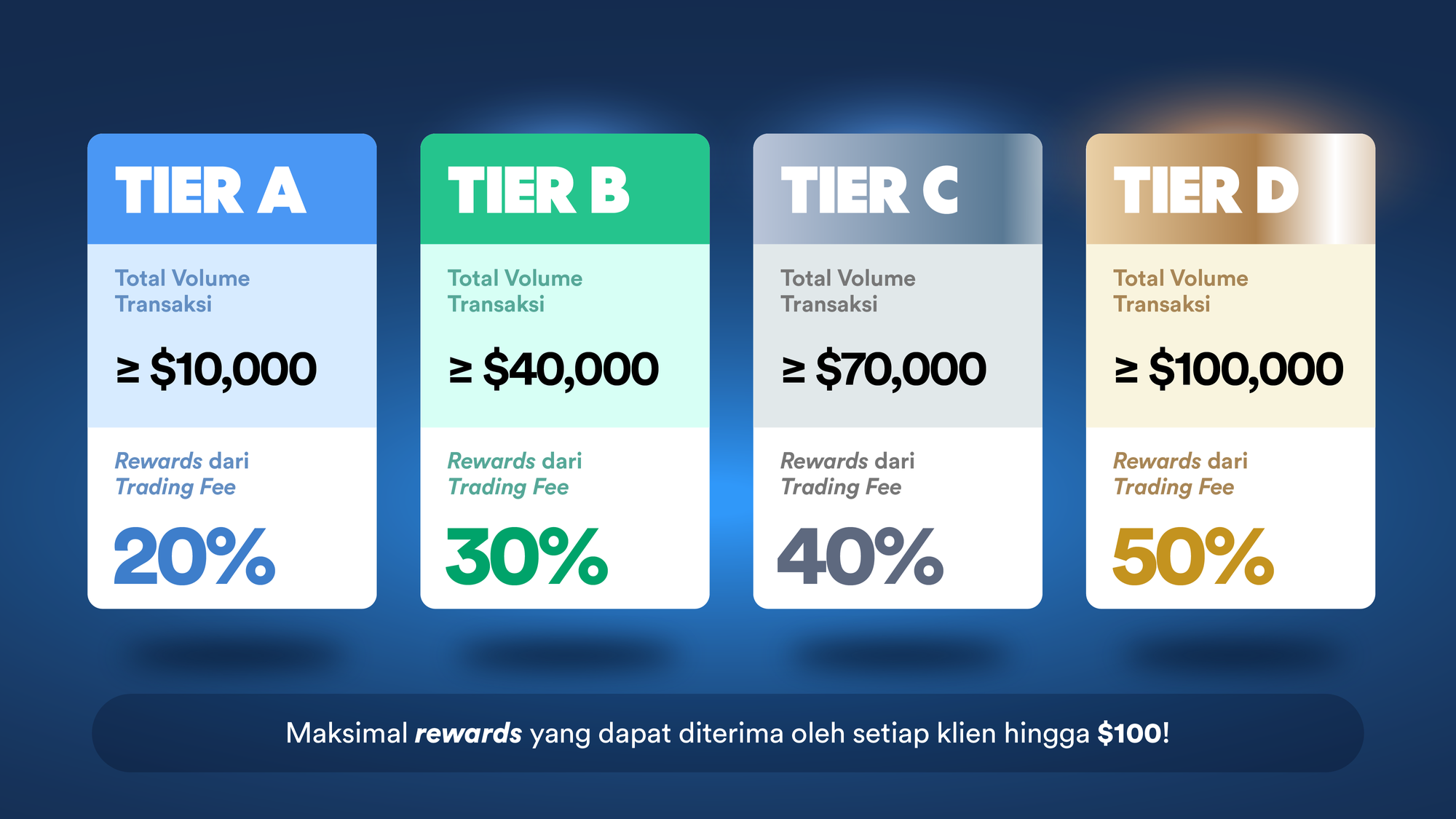 - Maksimal rewards yang dapat diterima oleh setiap klien hingga $100.